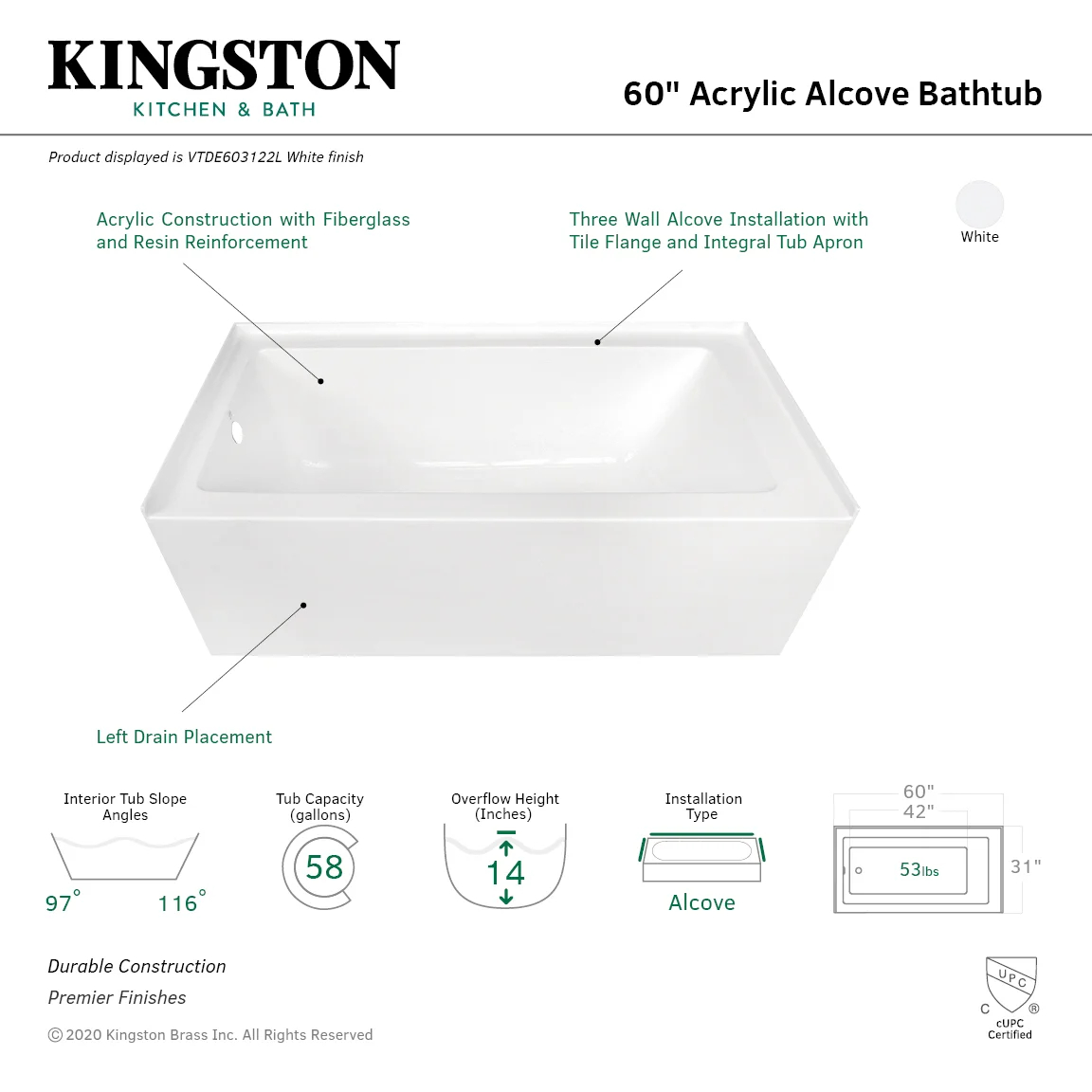 - Installation Type: Alcove/Tile in