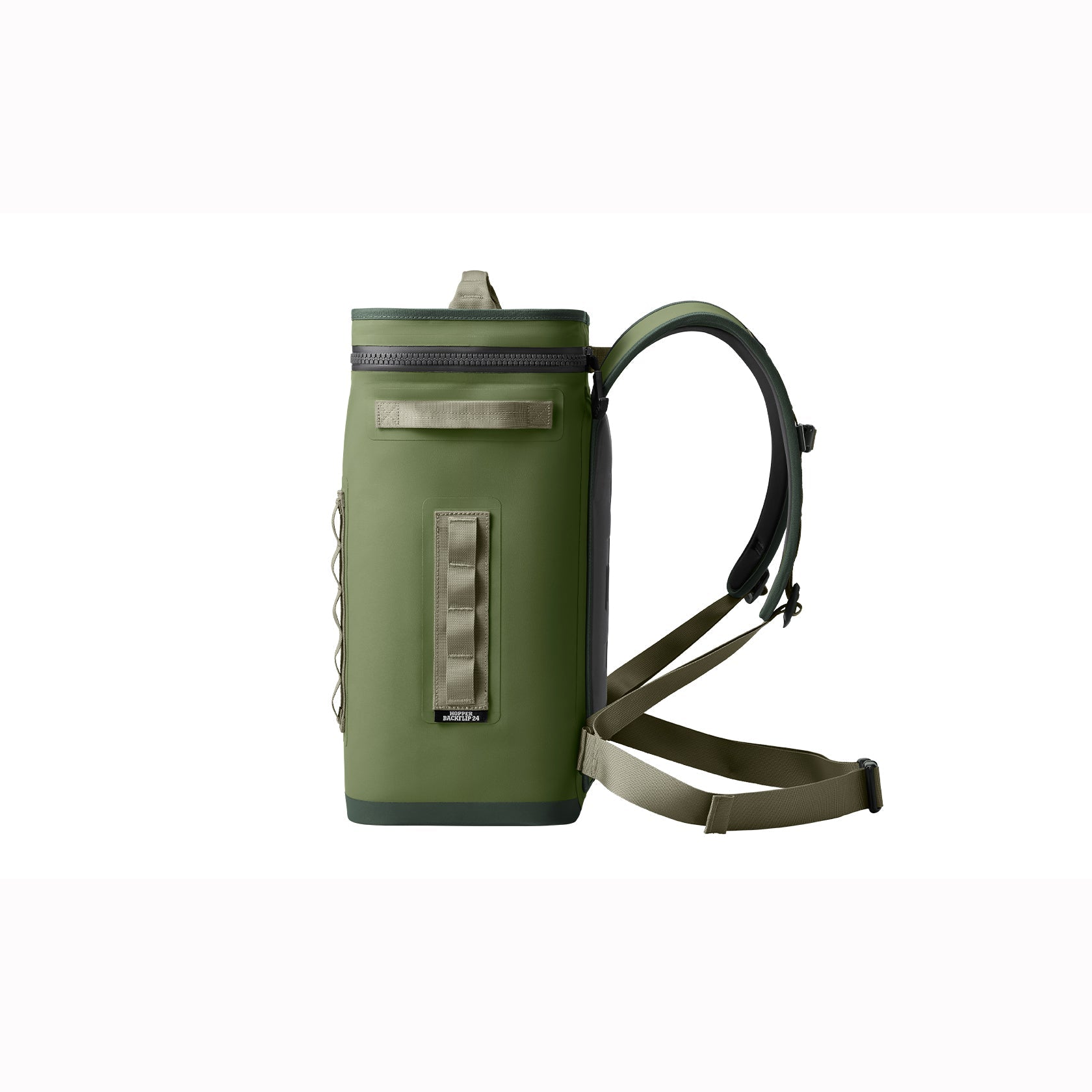 The Hopper BackFlipa??24 fuses the durability of the Hopper Flip? with a new, convenient-to-carry design. It's our first cooler engineered to carry as a backpack, using the best tech of both worlds. Built taller and wider than its Hopper Flip counterparts, Hopper BackFlip is designed to efficiently distribute the weight of your goods, while the ergonomic shoulder straps make the journey more comfortable. Even more, a removable chest strap and waist belt are included for added stability and security. And like the rest of the Hopper? family, it promises superior cold-holding, a 100% leakproof zipper, and a tough DryHidea??Shell. So, go ahead and trek to your favorite faraway fishing destination, because this backpack cooler won?��t slow you down.