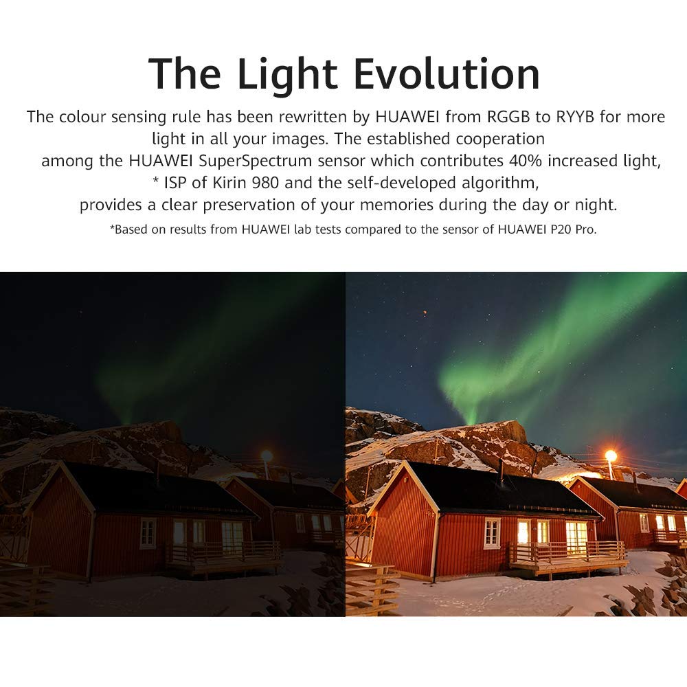 - See the splendor hidden in the night with up to ISO 409,600 on the HUAWEI P30 Pro. Also the colour sensing rule has been rewritten by HUAWEI from RGGB to RYYB for more light in all your images. The established cooperation among the HUAWEI SuperSpectrum sensor which contributes 40% increased light, ISP of Kirin 980 and the self-developed algorithm.