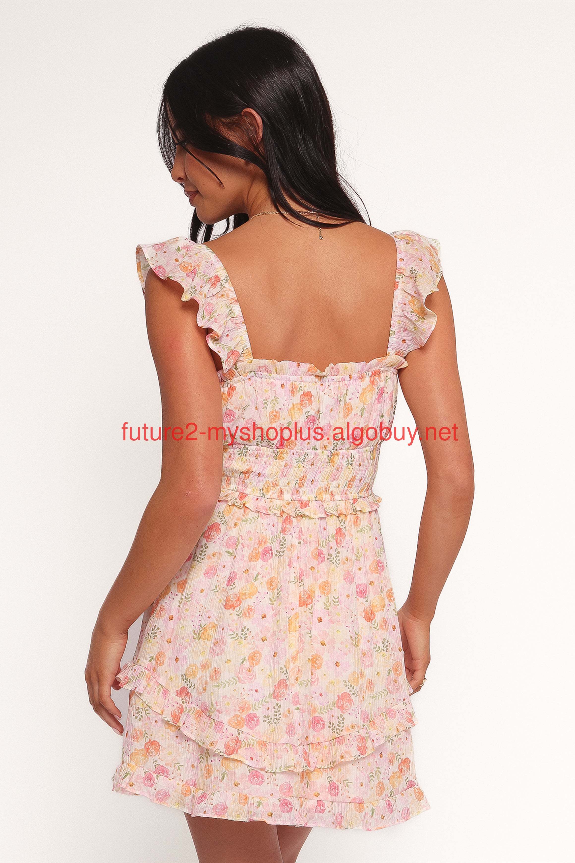 DETAILS Featuring a flattering elasticized square neckline and soft, elasticized shoulders with frill details, this dress combines comfort with graceful style. The tie-close detail on the bust adds a playful, adjustable touch, while the shirred elasticized waistband hugs your figure perfectly for a feminine silhouette.