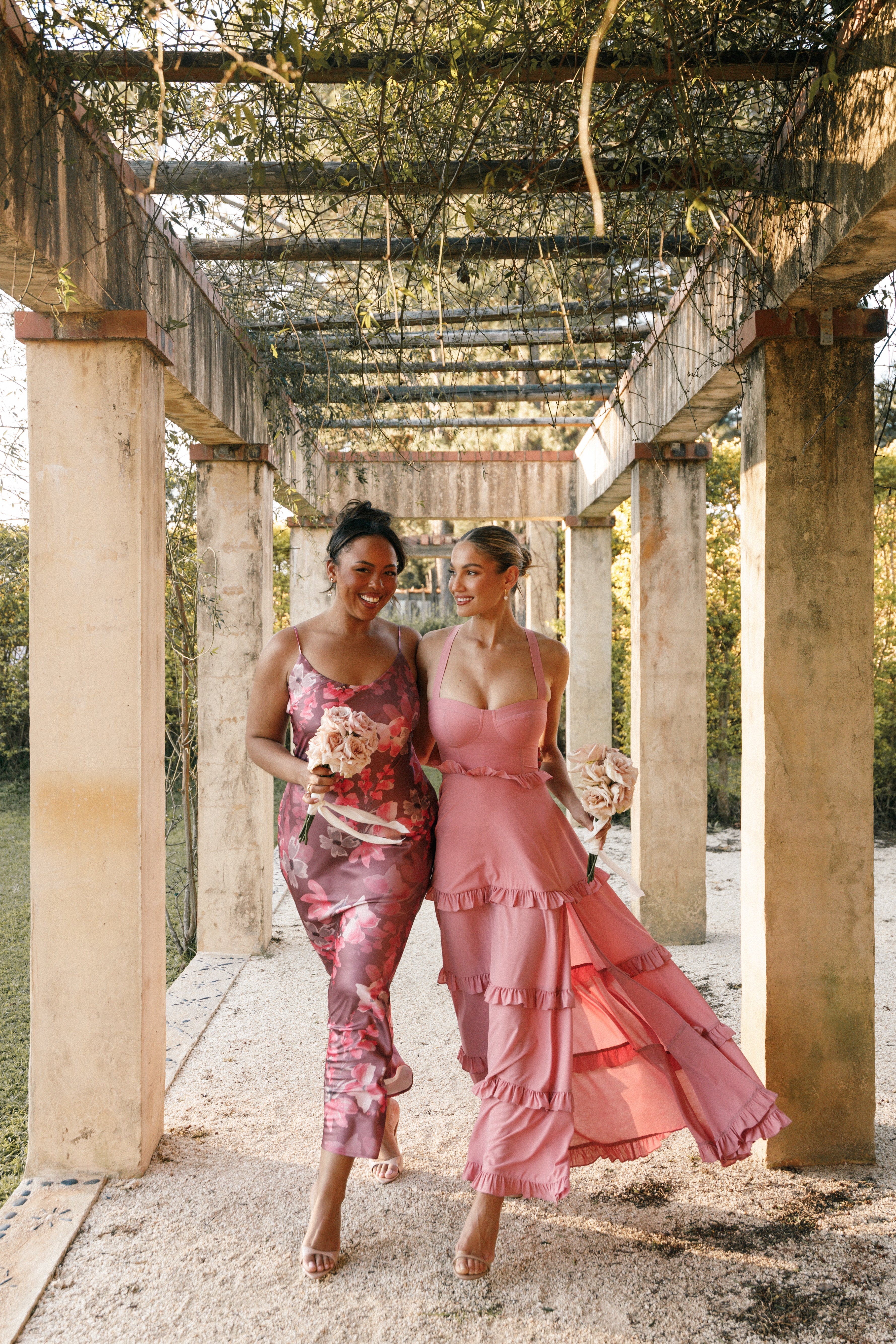 DETAILS Our floral satin maxi dress brings a touch of luxury to your everyday wardrobe. With its round neckline and thin adjustable straps, this dress is designed to fit you perfectly, offering both support and ease.