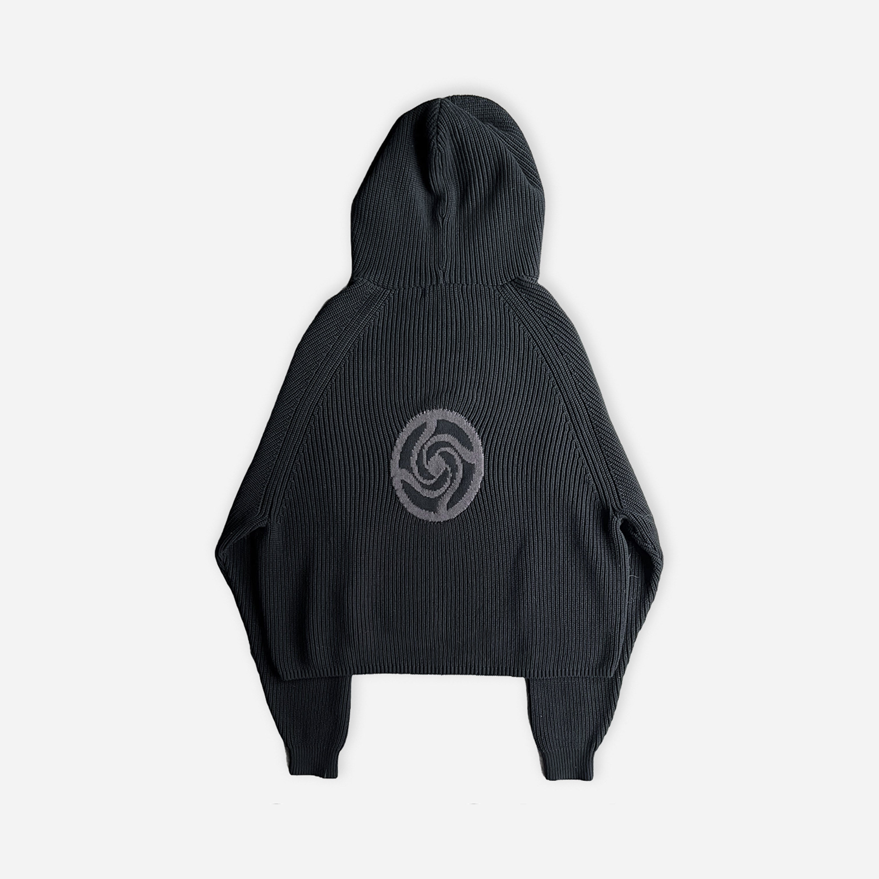 The JJK School Knit?Hoodie in Black is crafted with super heavy-weight knitted cotton, with an?oversized crop fit. It features?a large graphic on the back and an oversized hood. The hoodie has ribbed cuffs and is finished with a Shihiko sleeve tag.