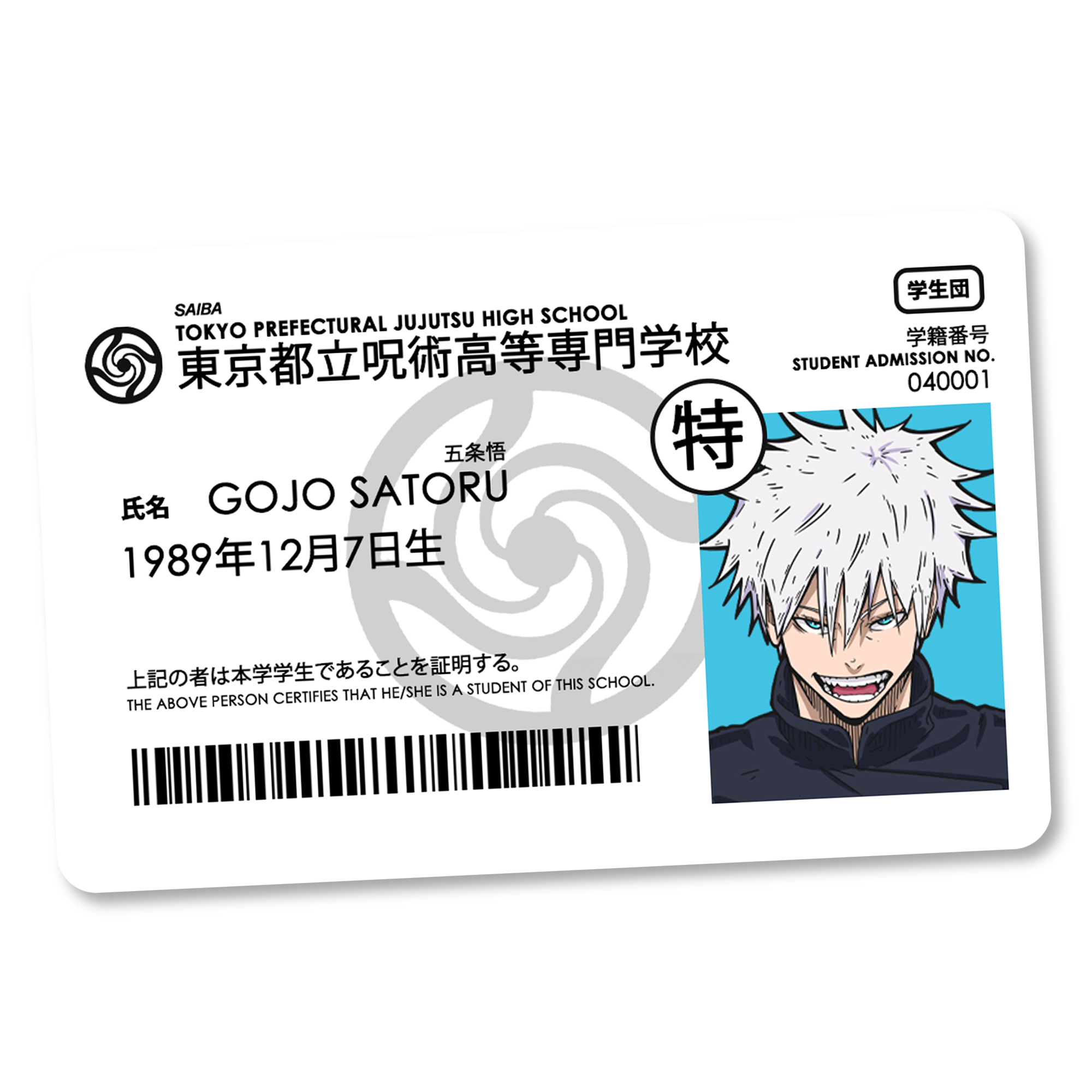 • Jujutsu Metropolitan Curse Technical College Identification Card