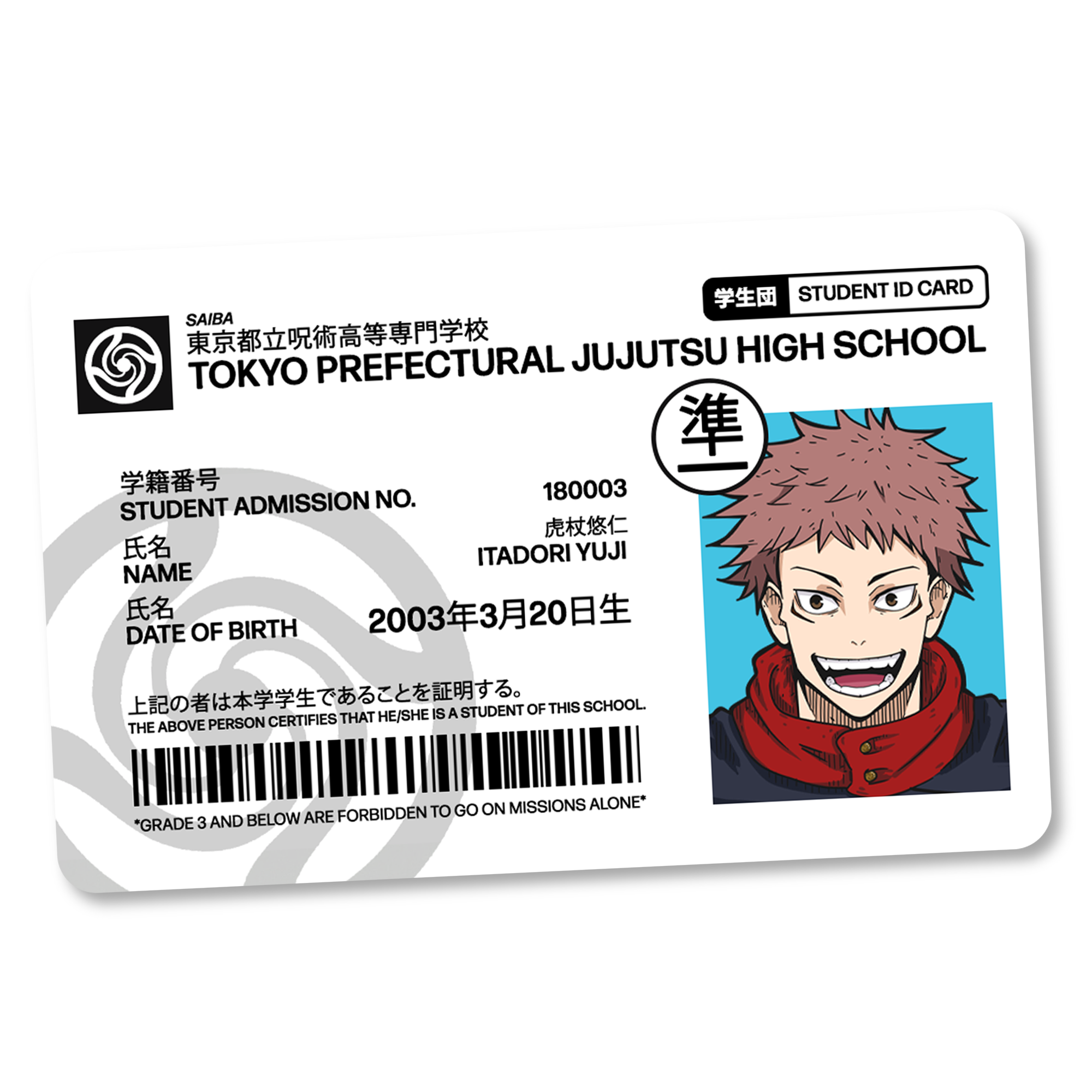 • Jujutsu Metropolitan Curse Technical College Identification Card