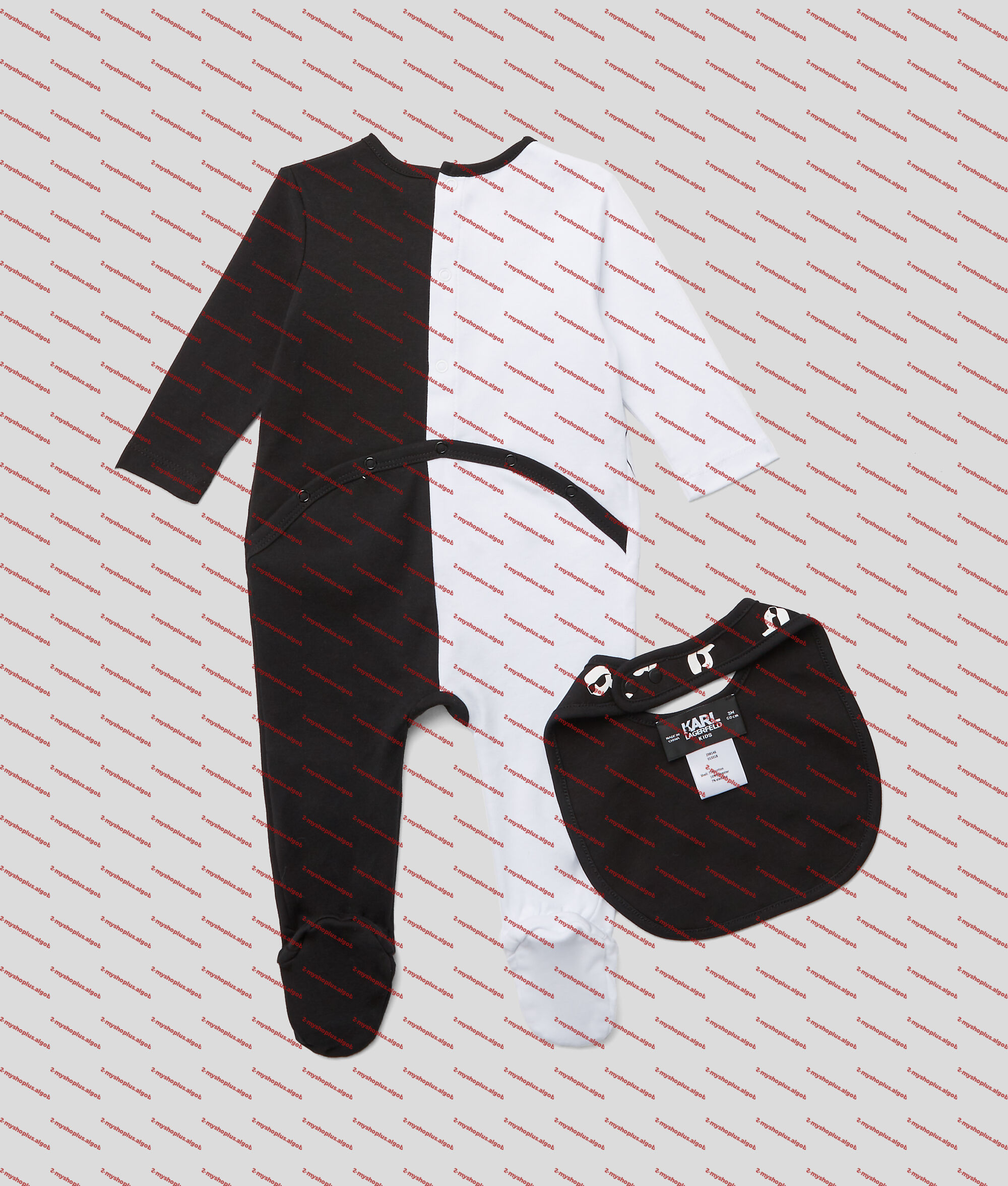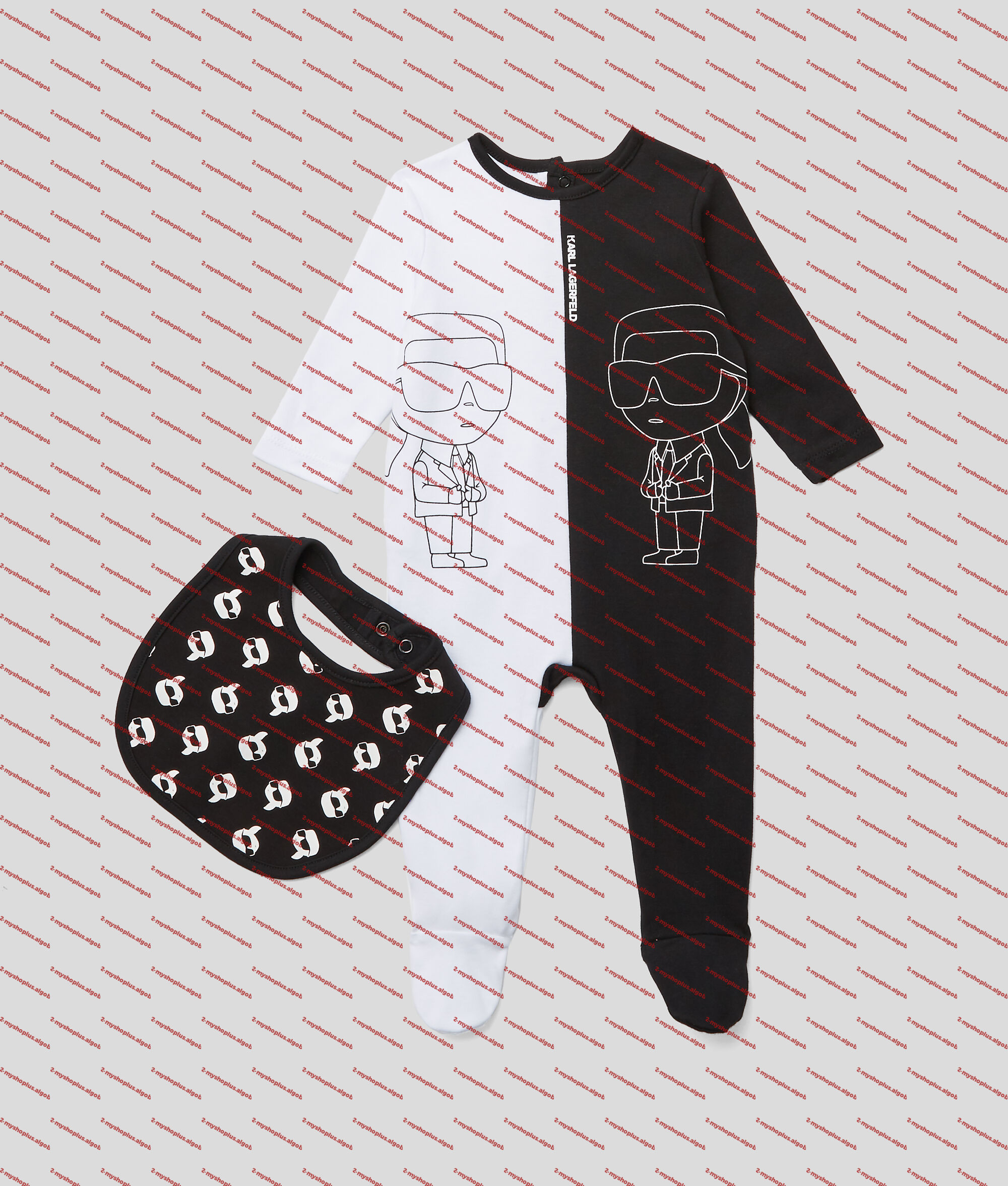 Doux rêves garantis dans cet ensemble bicolore K/Ikonik composé d'un pyjama bicolore avec motif K/Ikonik sur la poitrine et d'un bavoir.