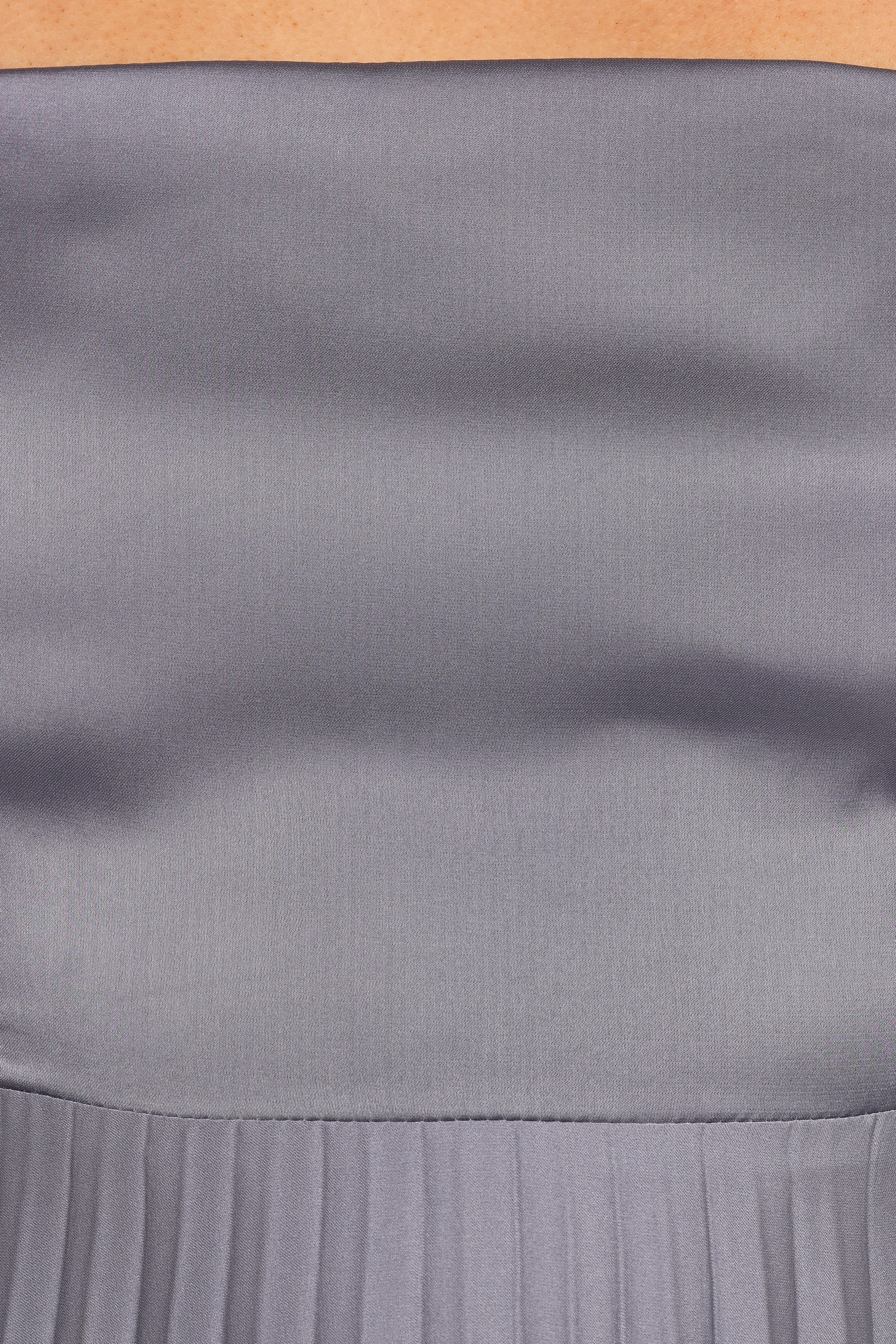 | DETAILS Imagine yourself in a dress that glides with every step, thanks to the luxurious satin sheen finish. The pleated skirt feature adds a touch of sophistication, creating a beautiful flow that captures attention and admiration. The straight neckline offers a timeless charm, perfectly balancing modern trends with classic elegance.