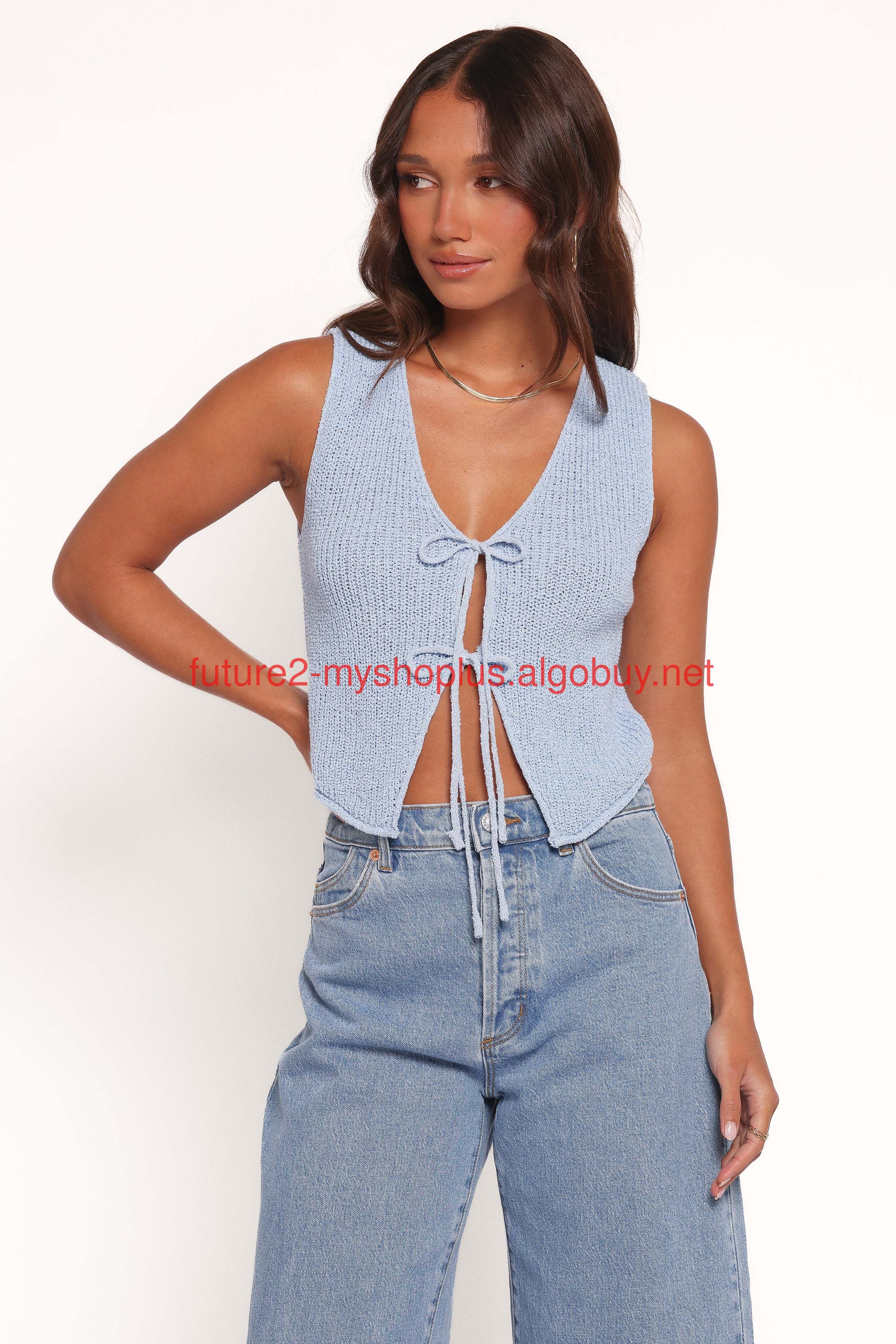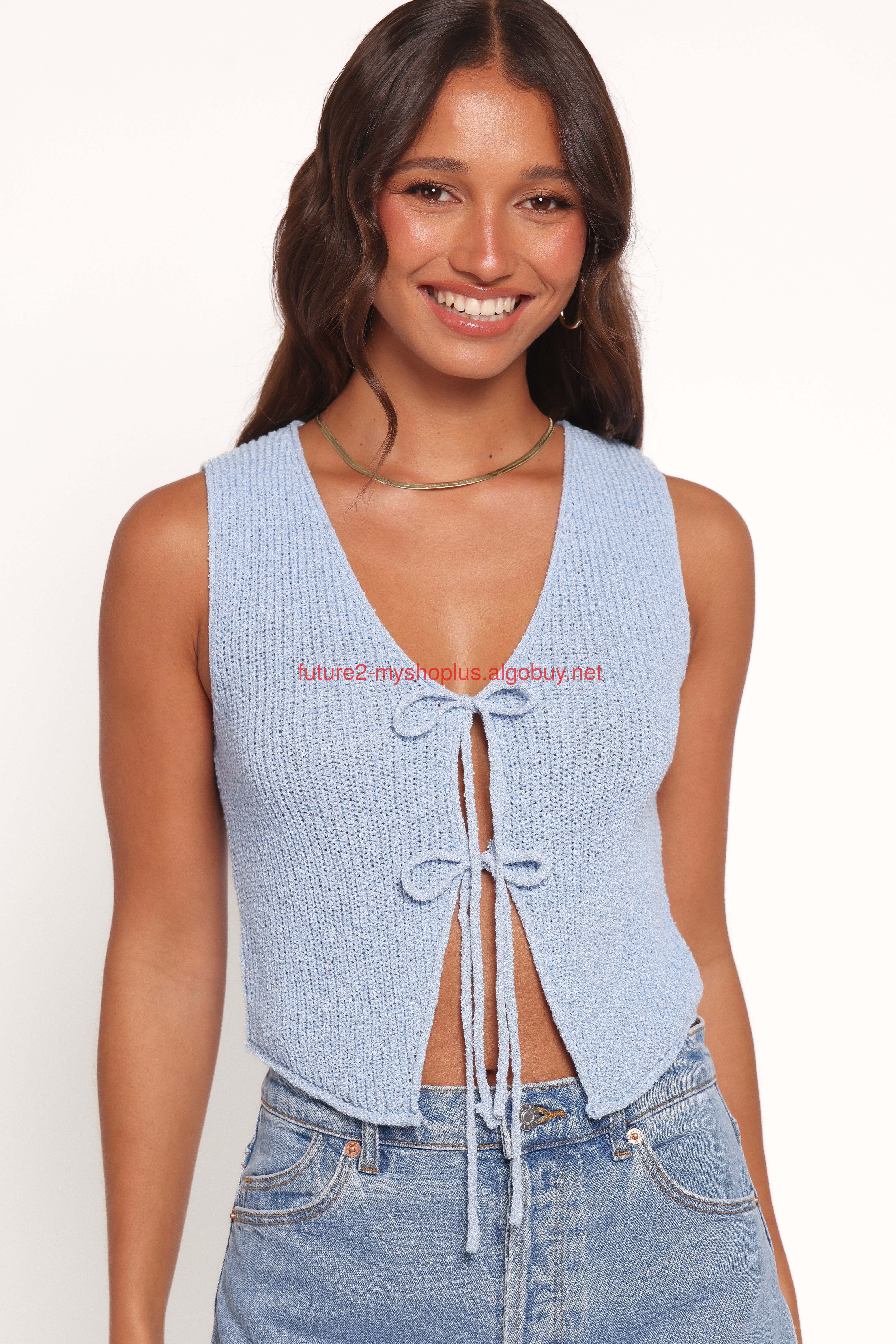 DETAILS This top is the perfect addition to any wardrobe! Featuring a v neckline and sleeveless design, this versatile knit top will take you from brunch to beach in style. The functional tie close feature adds an extra element of fun.
