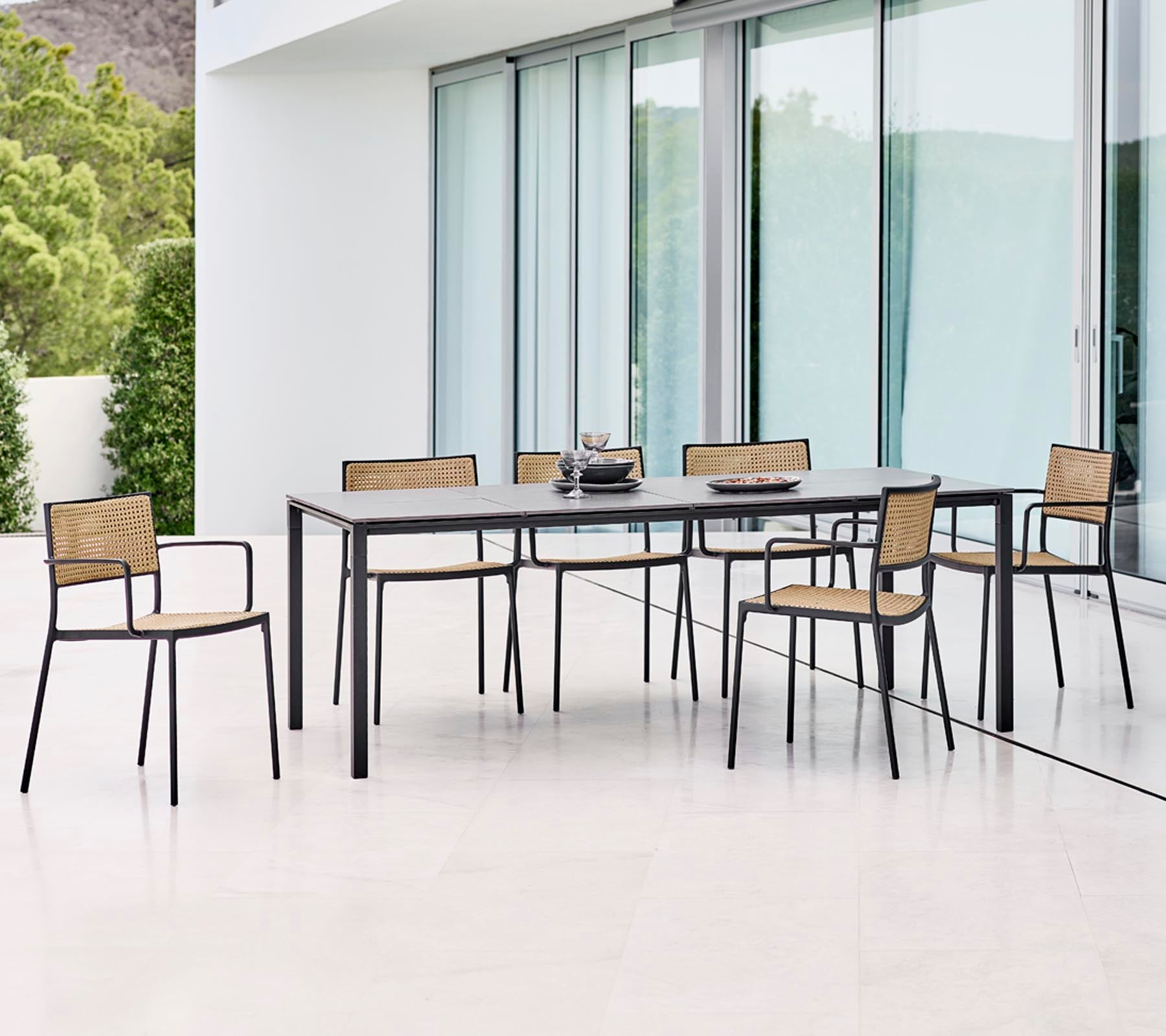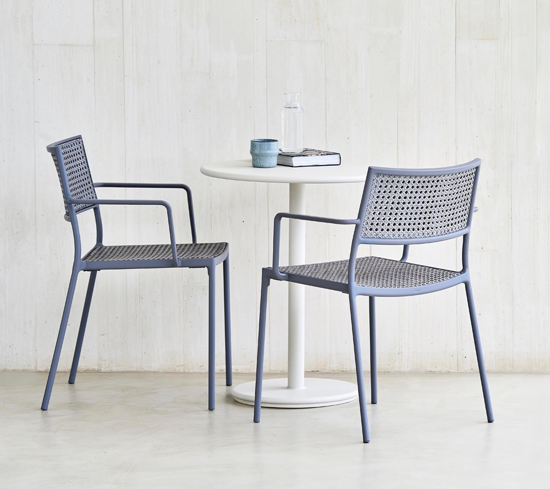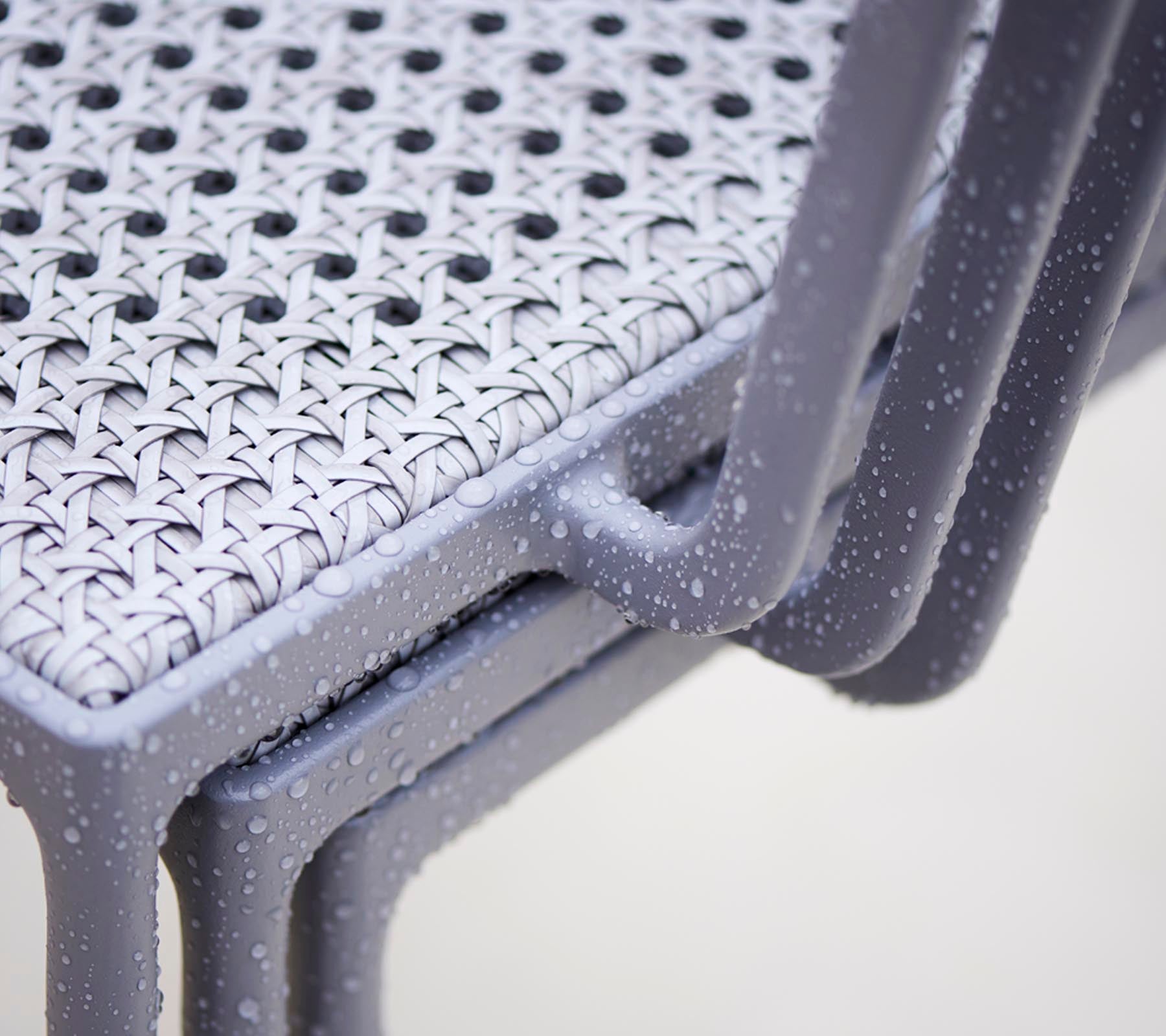 With solid cast aluminium seat and back sections, the chair is designed with a unique sense of detail. A true timeless piece of designer chair. The Less chair is designed and developed by designduo Hee Welling and Gudmundur Ludvik. The Less chair has a very simple and minimalistic frame construction that is cast in aluminium and refined down to the smallest detail. The seat and back are made with Cane-line French Weave.The Less chair is stackable, and therefore suited for most use cases. Both as part of a dining group, a meeting room environment or as an extra stylish chair that can be fetched in for any purpose - especially when space is an issue. The less chair is durable as well as stable and strong, and optimal for both outdoor and indoor use due to the chair having been coated with a special powder treatment that is even suitable under most weather conditions.