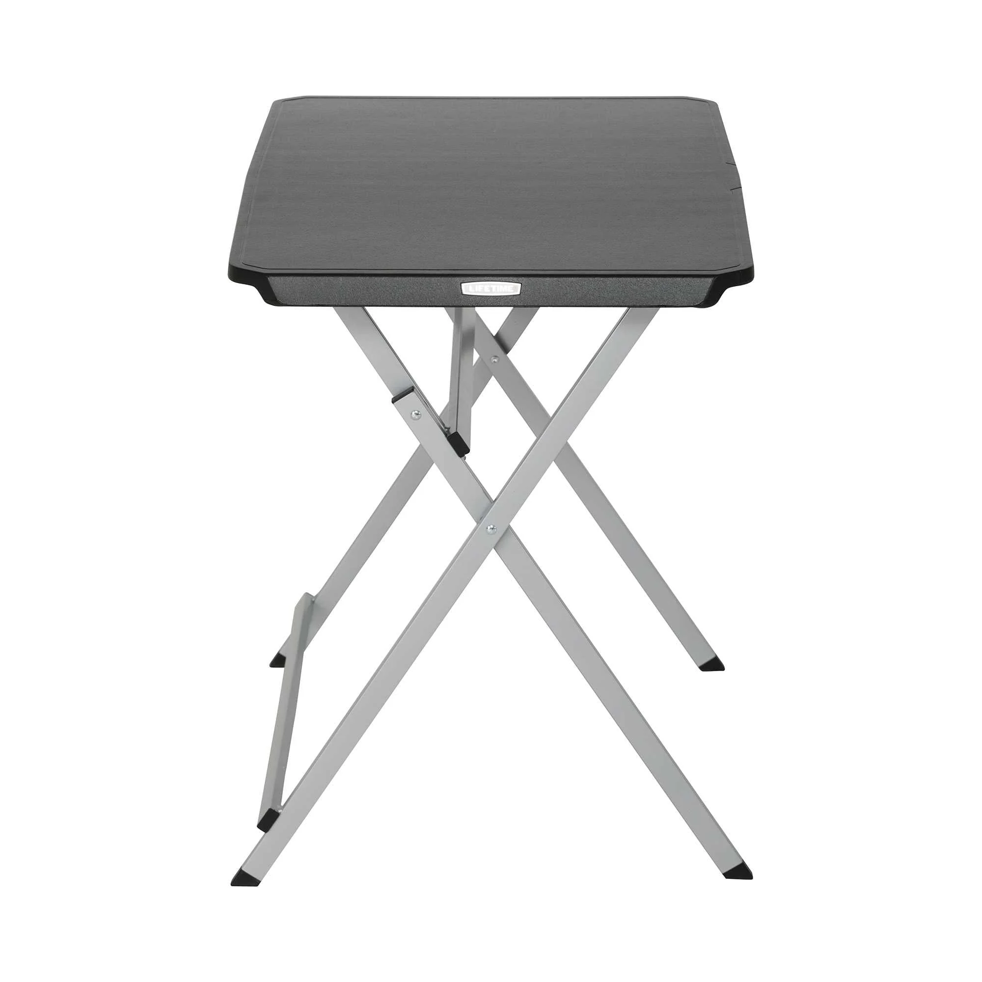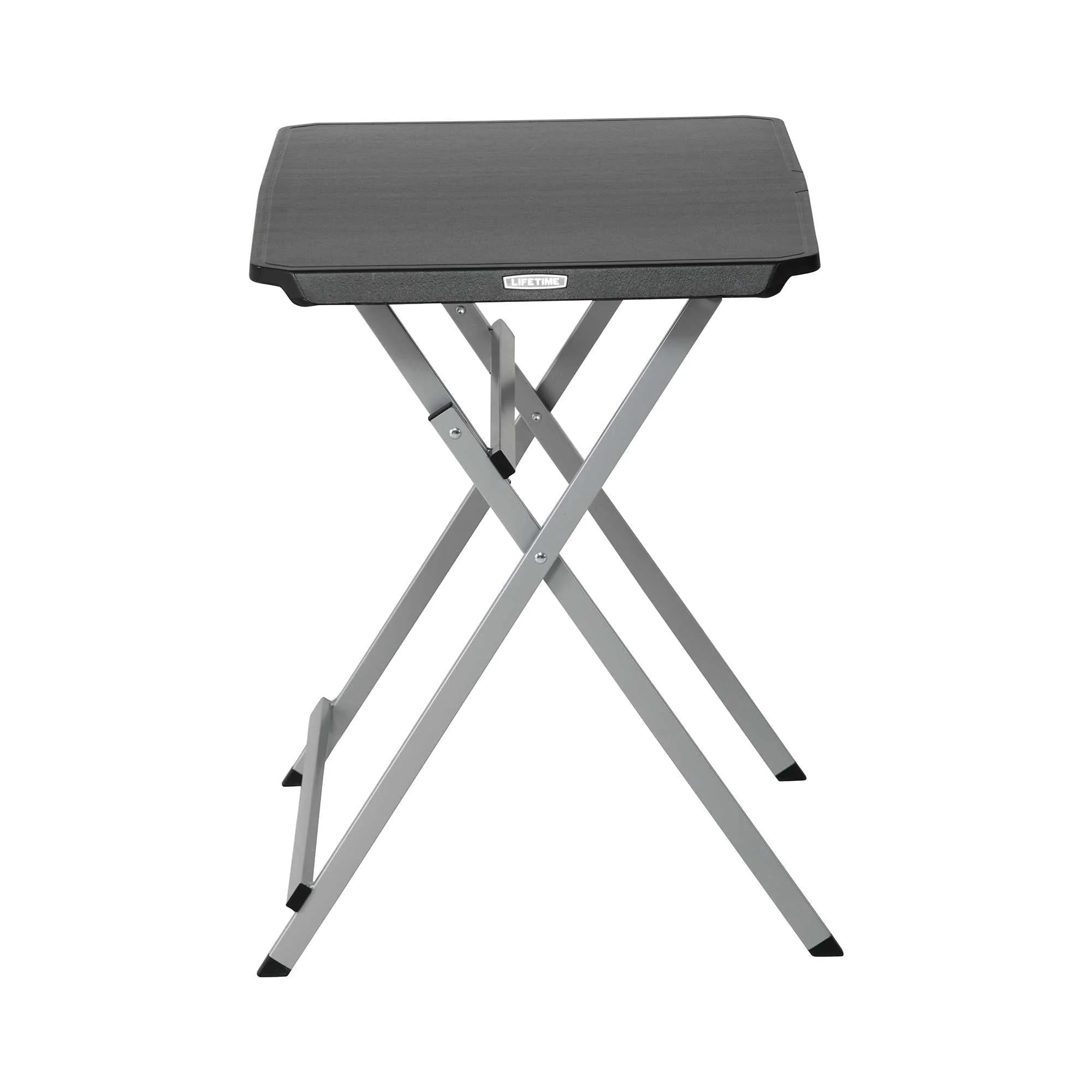 30-Inch Personal Tray Table - This is a black and silver personal folding table 30 in. X 20 in. with the X-frame and a rectangle top. Lifetime 30-Inch Personal Tables? are constructed of high-density polyethylene and designed for strength and stability. The wide-leg stance and brace position make the table the perfect desk height. The steel frame design folds flat for easy storage and is protected with a powder-coated£¬ weather-resistant finish. The modern style features thin edges£¬ rectangular tubing£¬ and a wide foot stance for ample legroom. The tables are built for indoor or outdoor use.