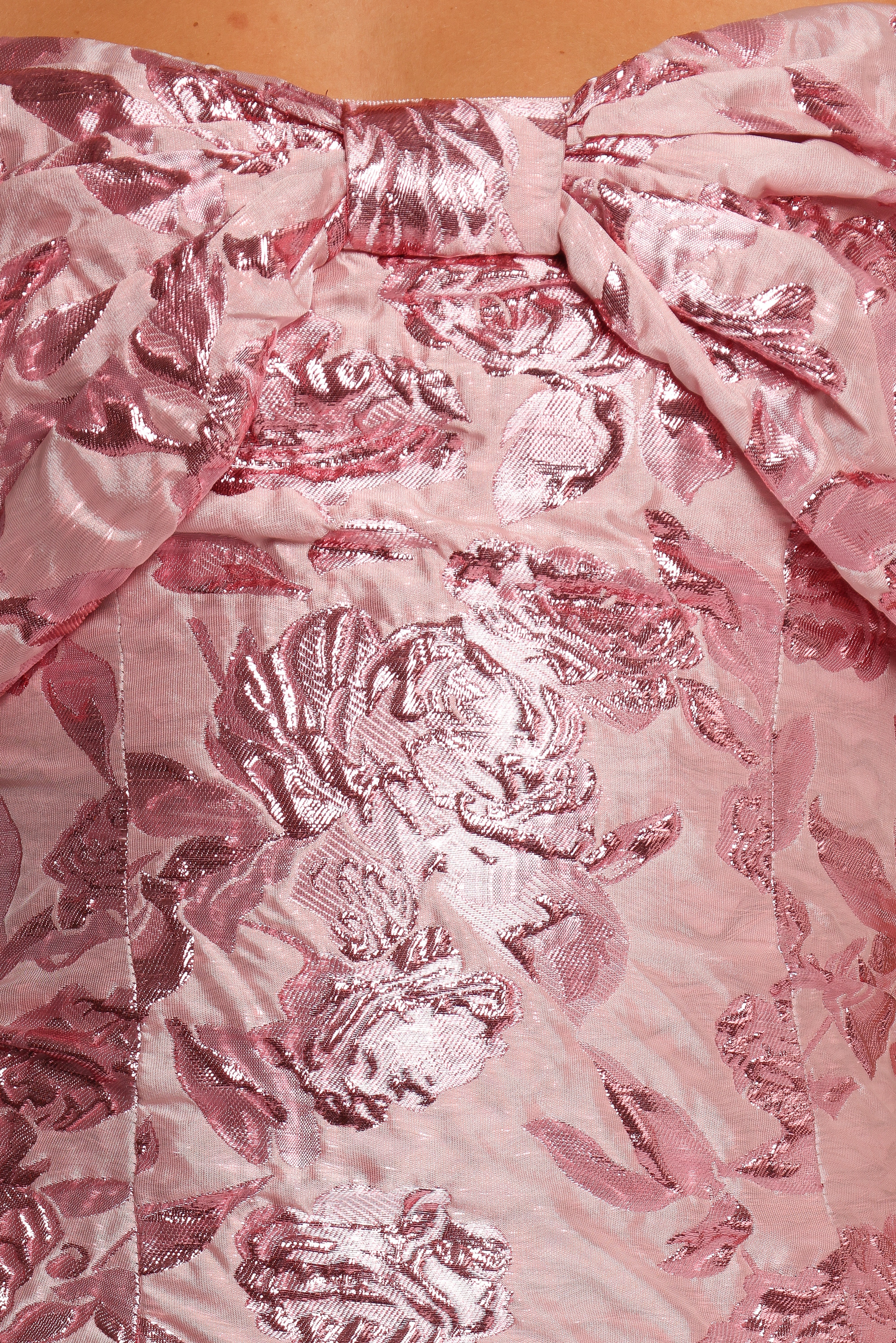 DETAILS Designed with a chic, strapless neckline and a striking oversized bow detail, this maxi-length dress makes an effortless statement. The subtle side split adds just the right amount of drama, allowing you to move with ease while turning heads.