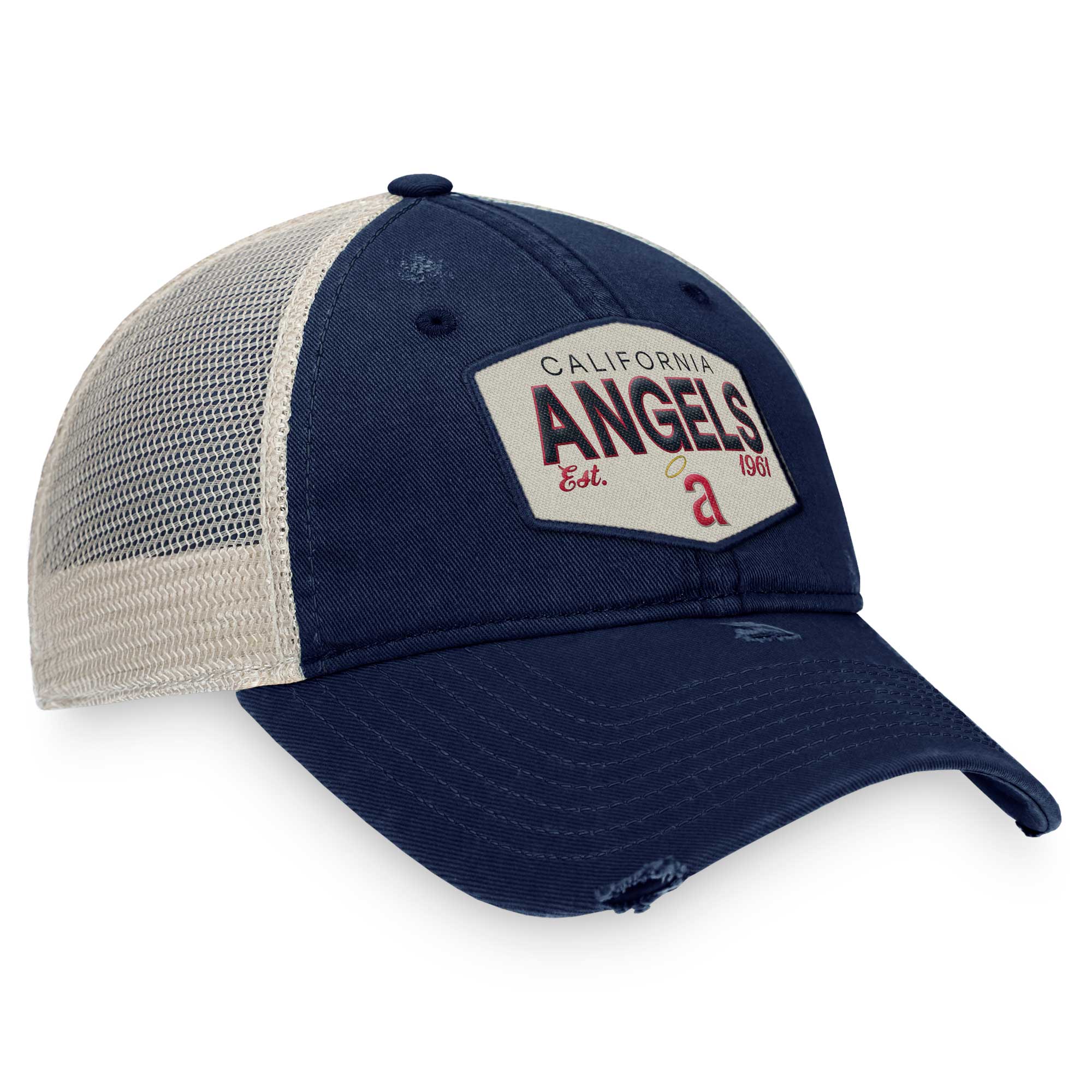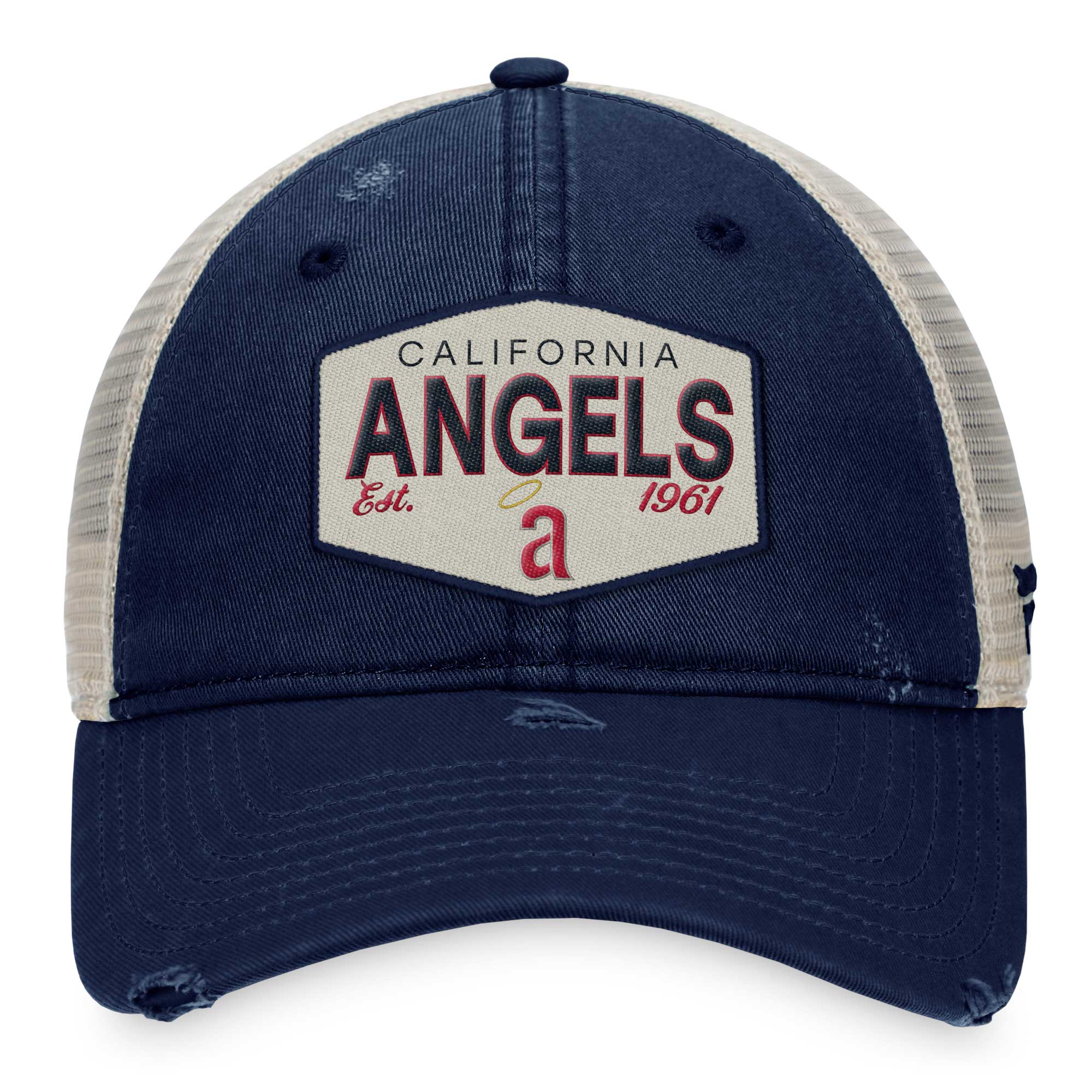 Bring some vintage flavor to your showing of unwavering enthusiasm for the Los Angeles Angels by adding this Patch trucker hat from Fanatics Branded to your gear collection. It features a bold Los Angeles Angels applique embroidered on the team-color front panels and distressed fabric that draws attention to your favorites. Mesh panels also provide a breezy feel while the snap closure makes customizing the fit easy.
