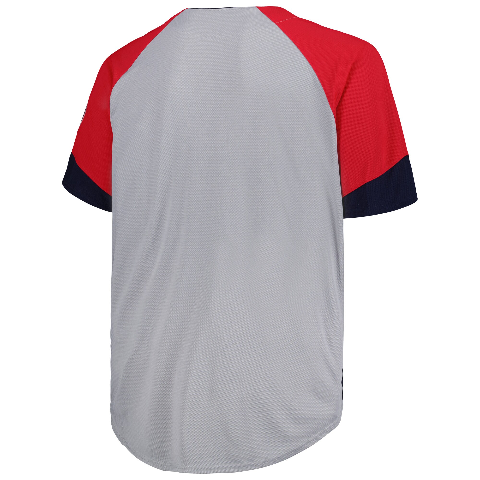Rock a trendy colorful look at the ballpark with this Los Angeles Angels Team Fashion jersey from Profile. The neutral gray torso contrasts with the team colors and graphics helping them pop off the fabric. And with a full-button front and raglan sleeves this jersey is built for comfort during baseball season.