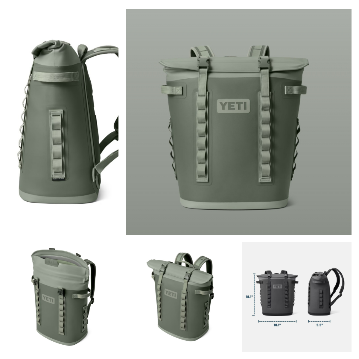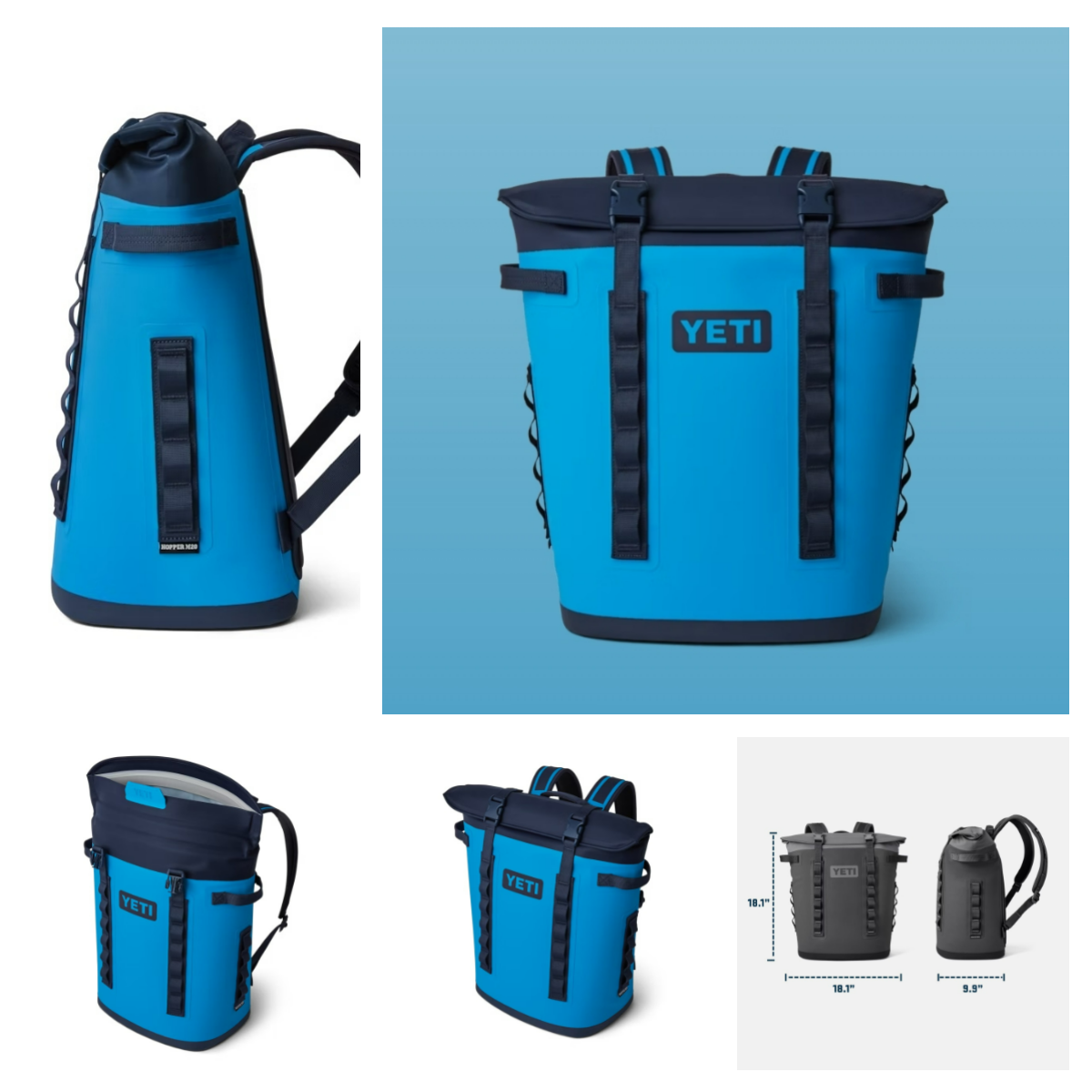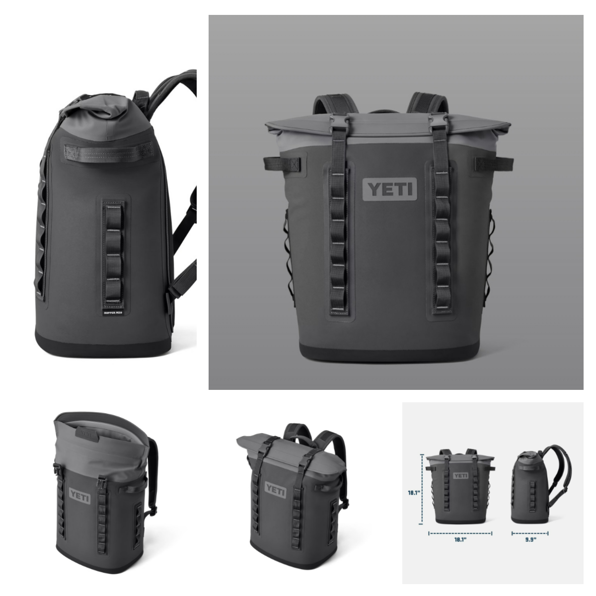 When you've got a few pals, a few refreshments, but the lake is a few miles down the trail, the YETi? Hopper? M12 Backpack Soft Cooler has your back. it's the perfect refreshment hauler for any day trip or side mission.This comfortable, easy-to-open (and stay open) cooler was designed to fit wine bottles and hold up to 20 cans* of your favorite beverage for days in the summer sun.Attach accessories such as the Rambler? Bottle Sling or Sidekick Dry? Gear Case to the HitchPointa??Grid for even more hands-free function. The durable MagShield Access uses a strip of ultra-strong magnets that keeps your cooler closed and leak-resistant. And the Kangaroo Pocket lets you easily stash away keys, a wallet,or phone so you can get going.