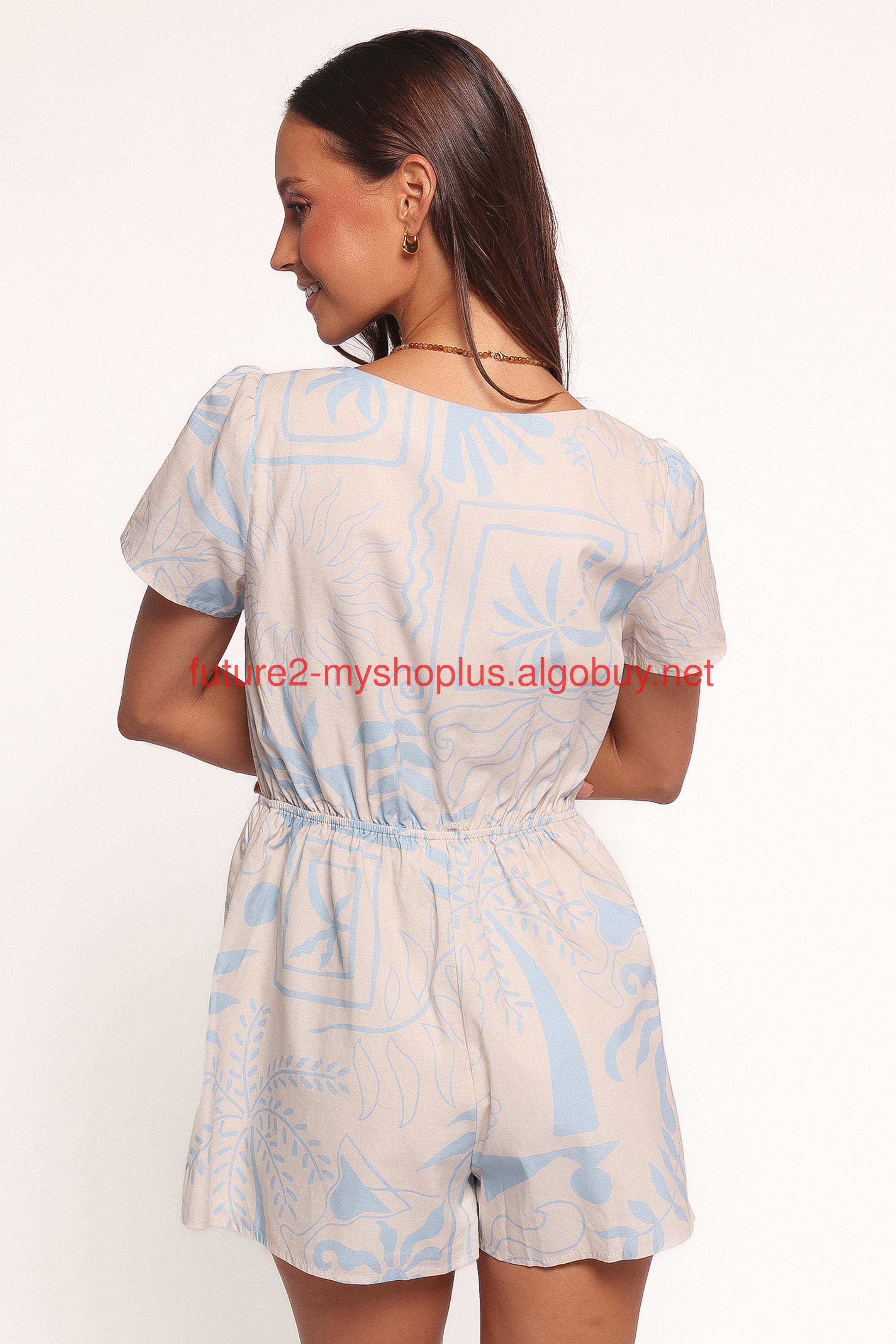 DETAILS Add effortless charm to your wardrobe with the Maiah Romper in Blue Soleil. Featuring an elegant v-overlay neckline and breezy short sleeves, this romper is designed to keep you looking chic and feeling comfortable all day long.