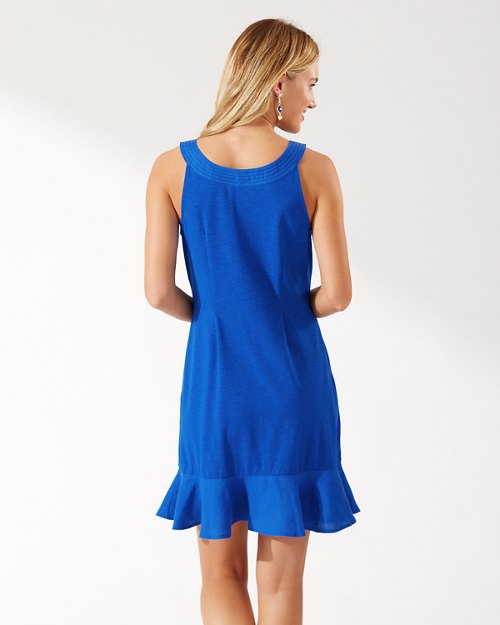 Bright, simple, and ready for sunshine—this sundress featuring a breezy flounce bottom is going to be your summertime go-to with its comfortable cotton blend and easy-to-coordinate solid design.