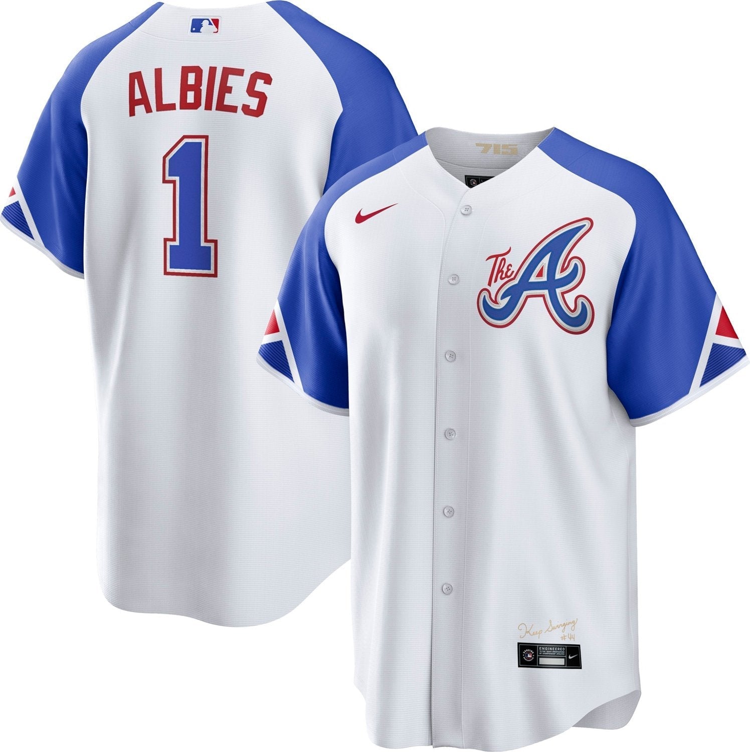 Rep your favorite player with the Men's Atlanta Braves Albies City Connect Replica Jersey. The polyester offset mesh fabric provides a comfortable feel while the graphic design shows off your Bravos pride.