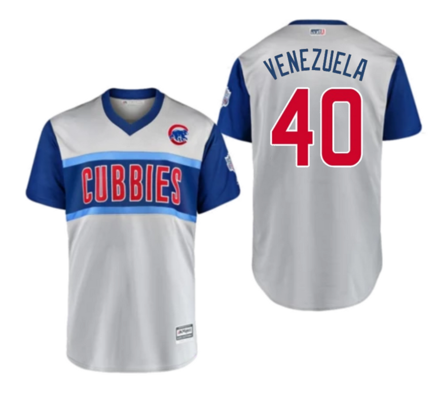 Men's Chicago Cubs Willson Contreras Venezuela Majestic Gray 2019 Little League Classic Replica Player Jersey