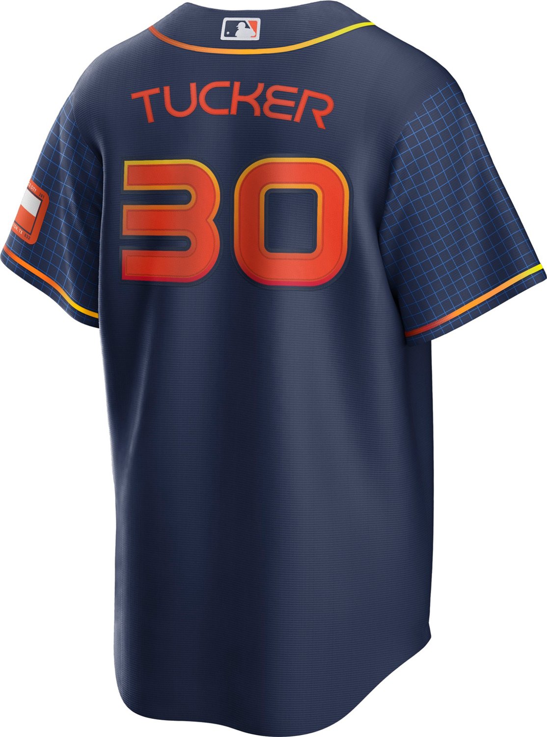 Feel like an MVP with the Men's Houston Astros Kyle Tucker #30 City Connect Replica Jersey. This lightweight top is made from polyester mesh to keep you cool throughout the day. Its printed design mirrors the jersey worn by Houston Astros left fielder Kyle Tucker.