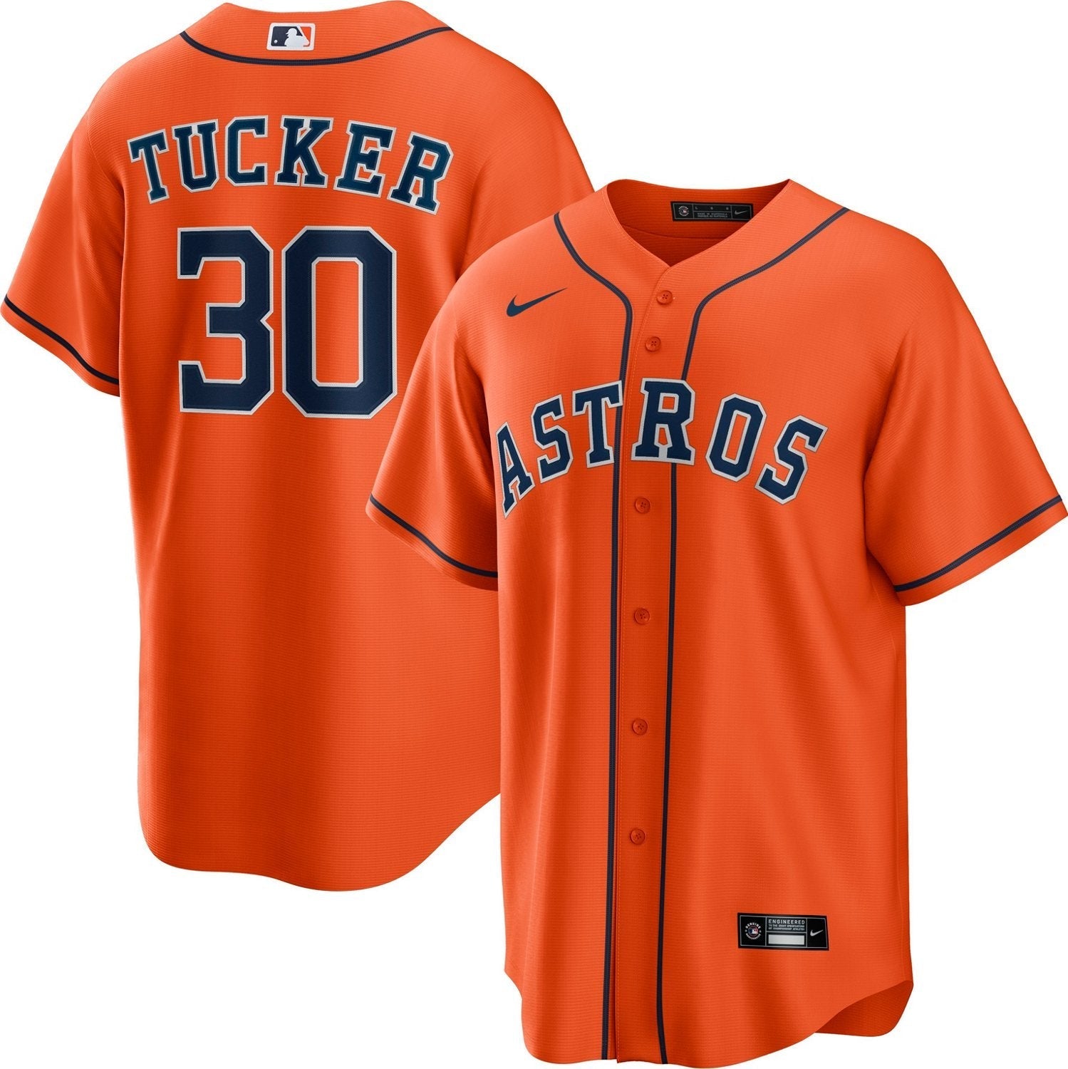Cheer on your favorite player in the Men's Houston Astros Kyle Tucker #30 Official Replica Jersey. This jersey is made from polyester coolbase fabric for durability and has a tackle twill Astros Kyle Tucker #30 replica design to show your team spirit.