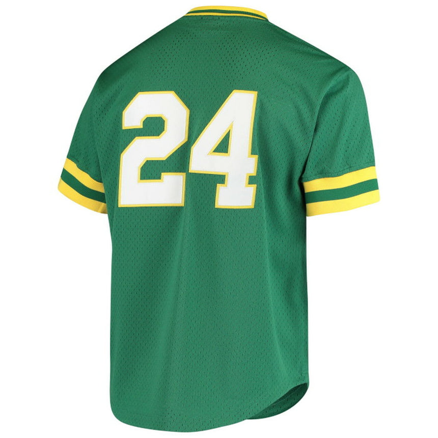 • Men's Oakland Athletics Rickey Henderson 1991 Mitchell & Ness Green Cooperstown 1987 Mesh Batting Practice Jersey