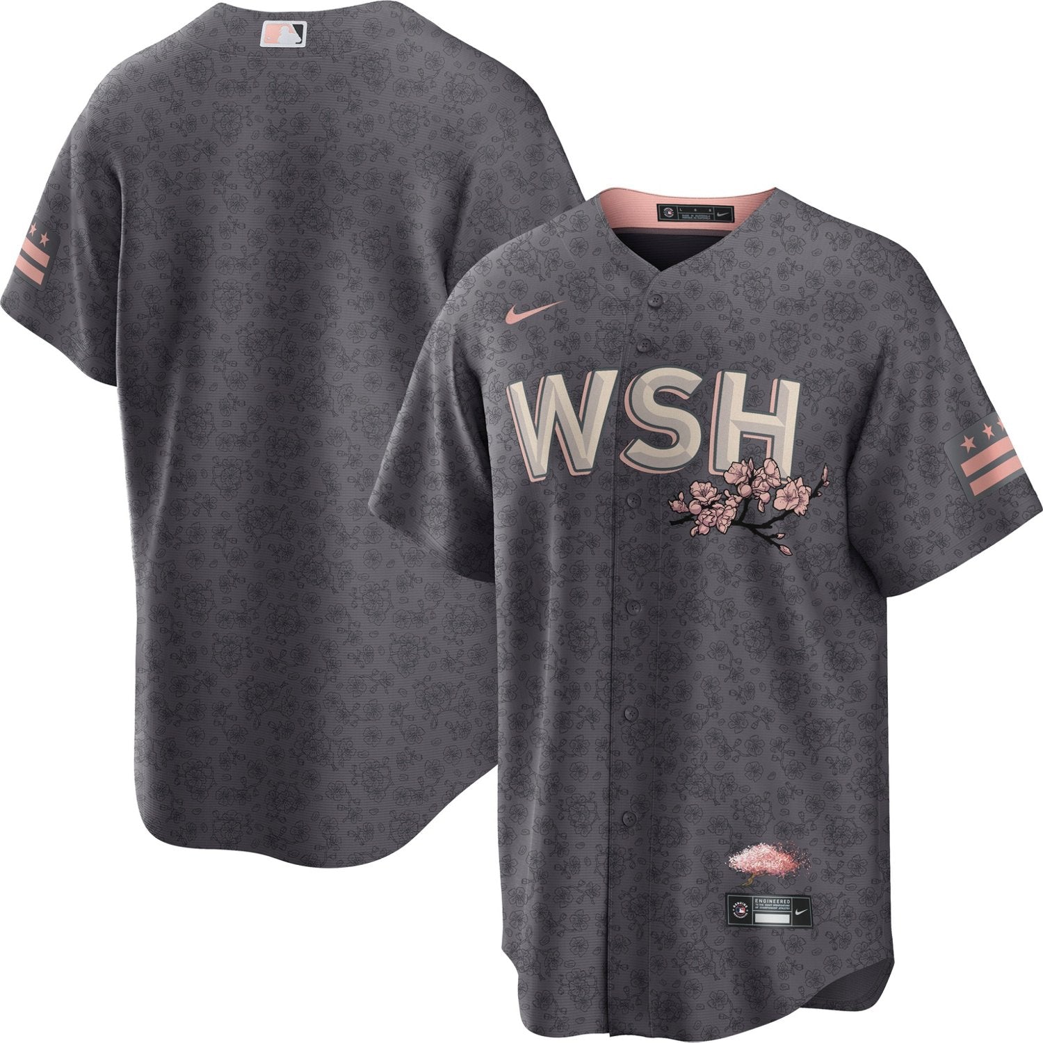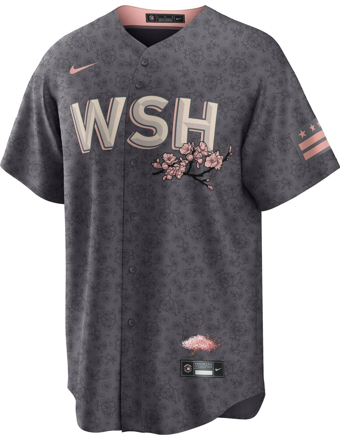 Rep your favorite player with the Men's Washington Nationals City Connect Replica Jersey. The polyester jersey fabric provides a comfortable feel while the graphic design shows off your Nationals pride.