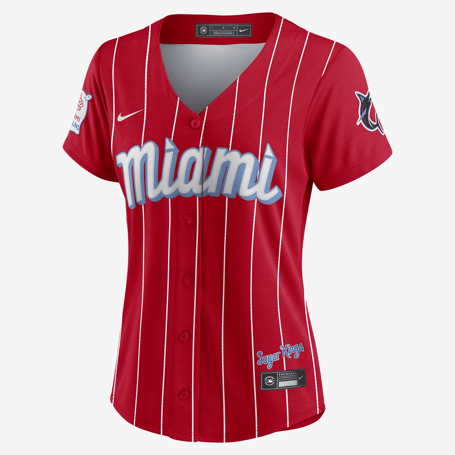 The Miami Marlins City Connect Jersey helps deliver a comfortable fit with its polyester material. It features an authentic design dedicated to the Havana Sugar Kings to help give you an exclusive look on game day.
