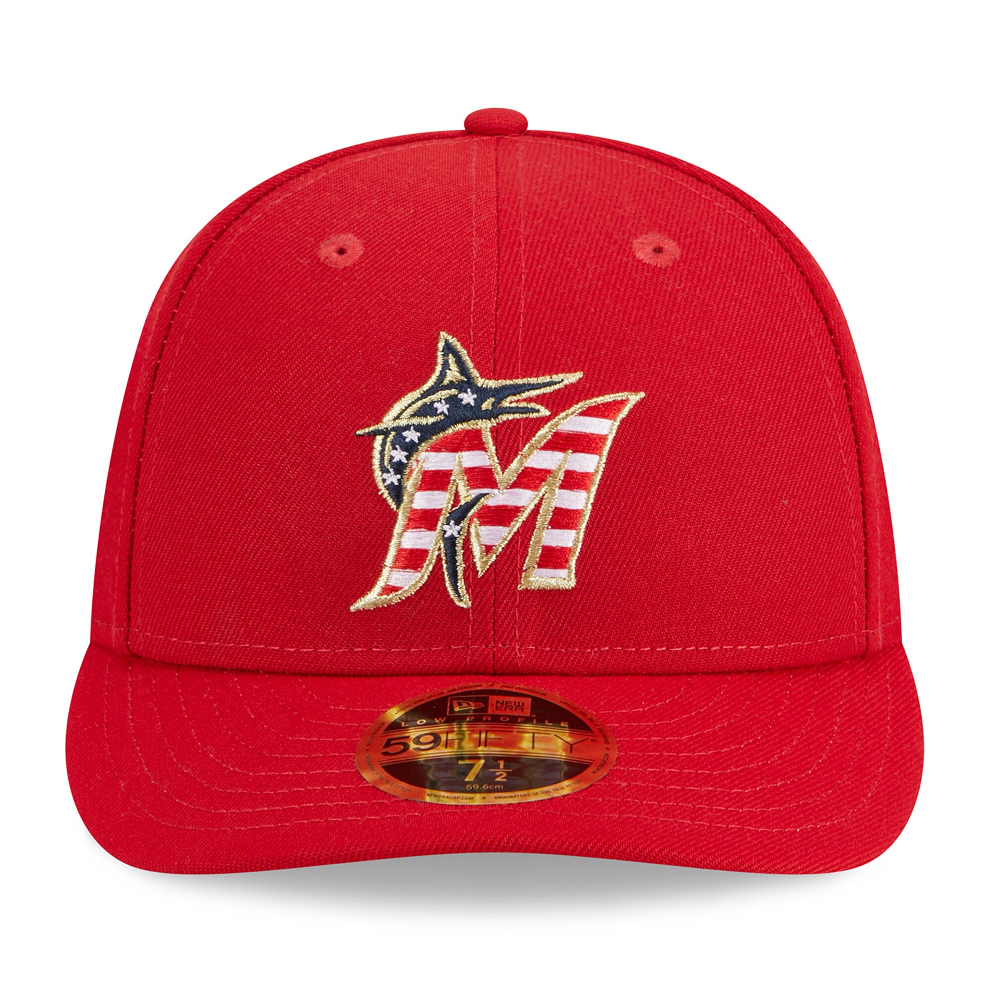 Baseball and the Fourth of July are a great American duo. Celebrate Independence Day with this Miami Marlins Low Profile 59FIFTY Fitted Hat from New Era. Whether you're at the ballpark or the barbeque these American Miami Marlins graphics will be a hit wherever you go.