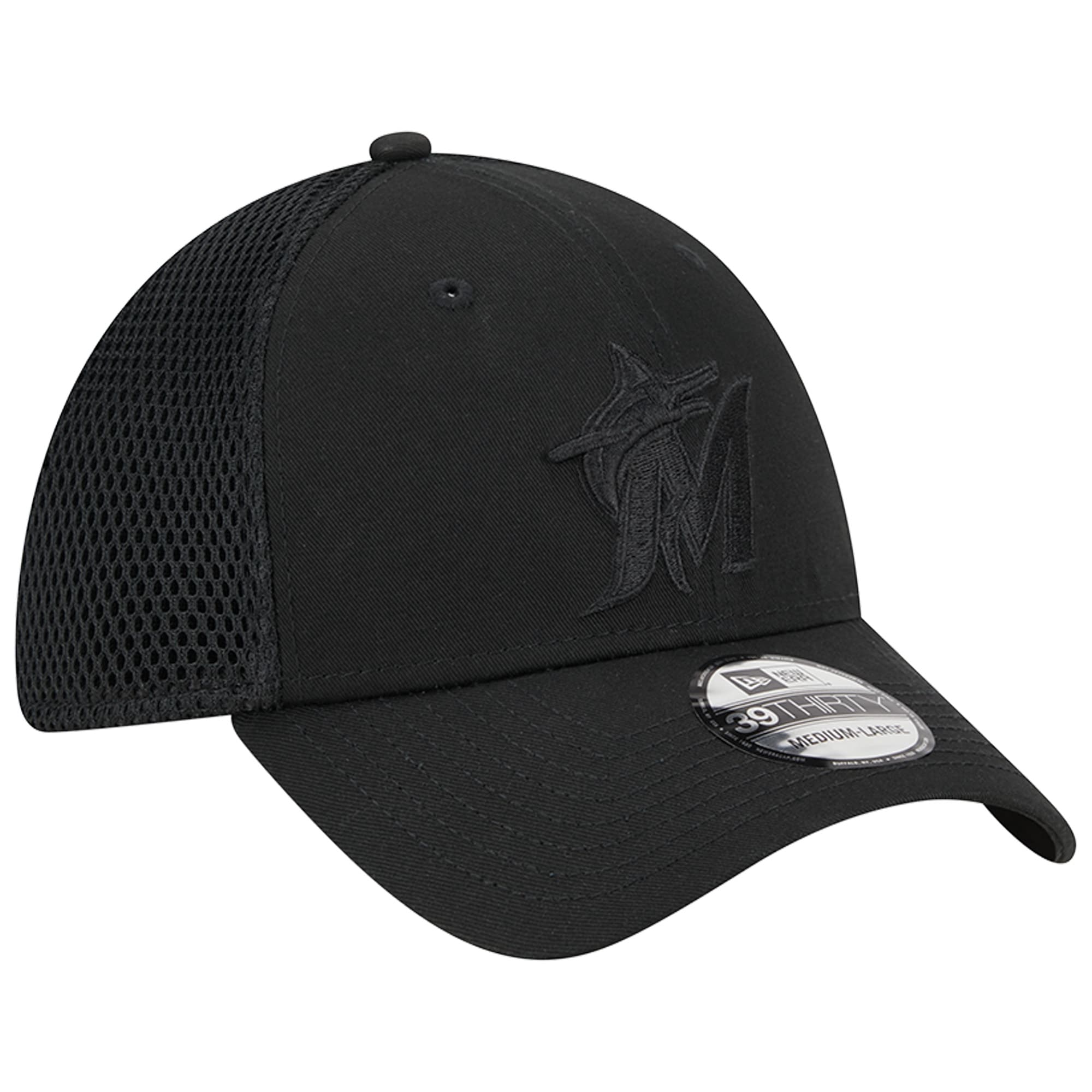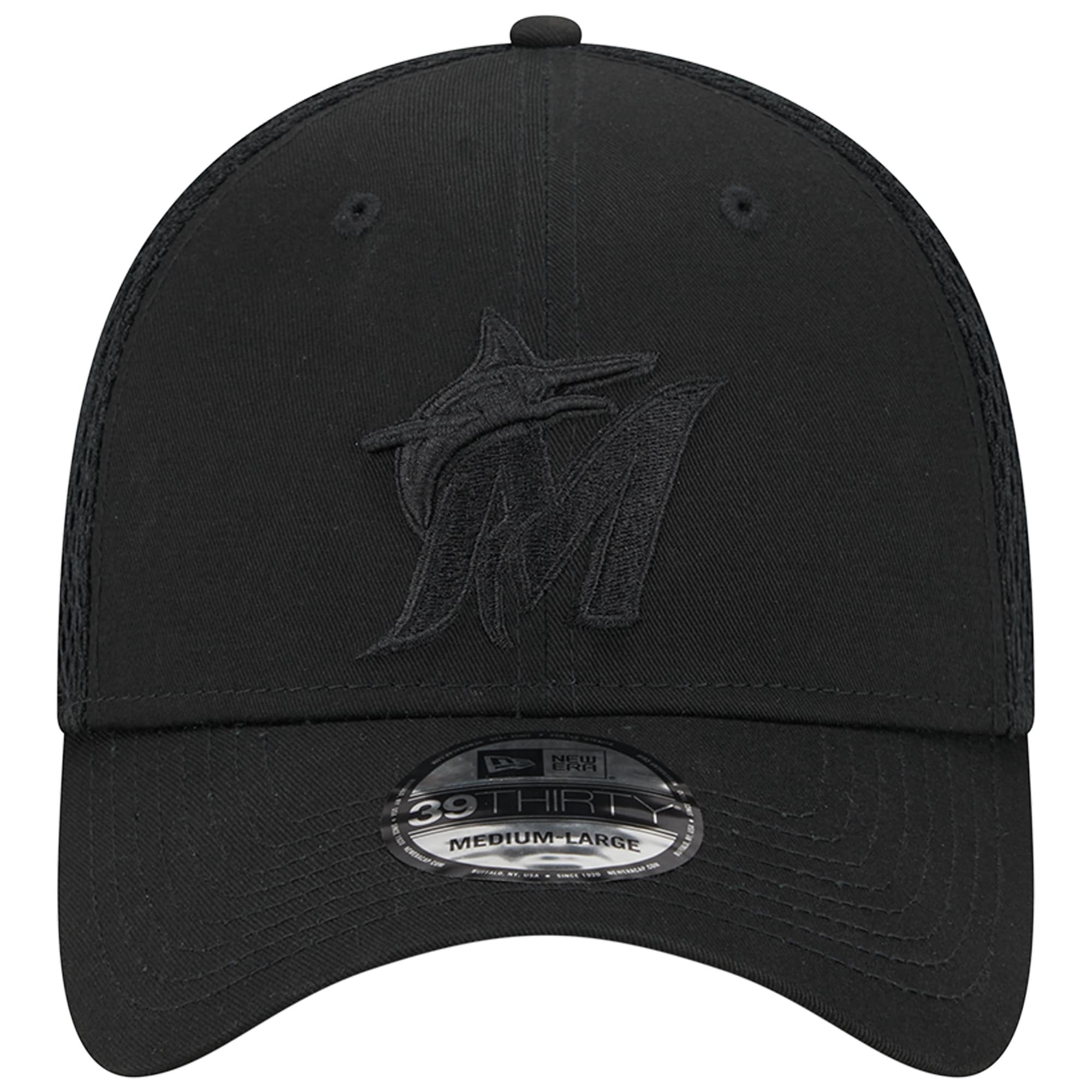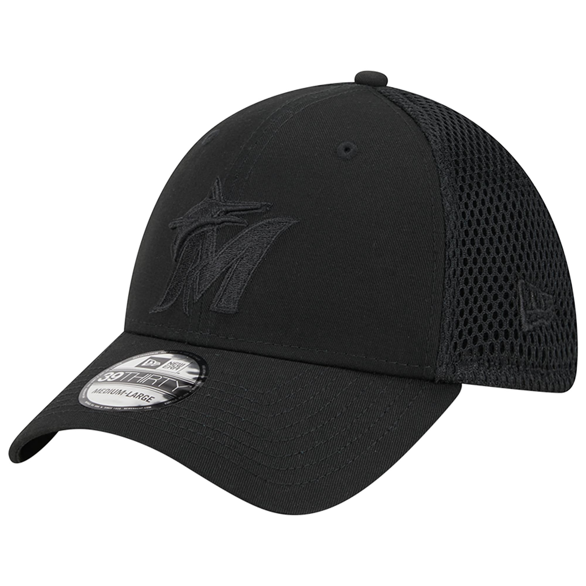 Add this New Era Black-on-Black Neo Mesh 39THIRTY hat as the perfect finishing piece to your game day look. A monochrome design with unmistakable Miami Marlins graphics puts your fandom front and center. A stretch-fit back allows for a customized secure fit as the mesh overlay promotes breathability.
