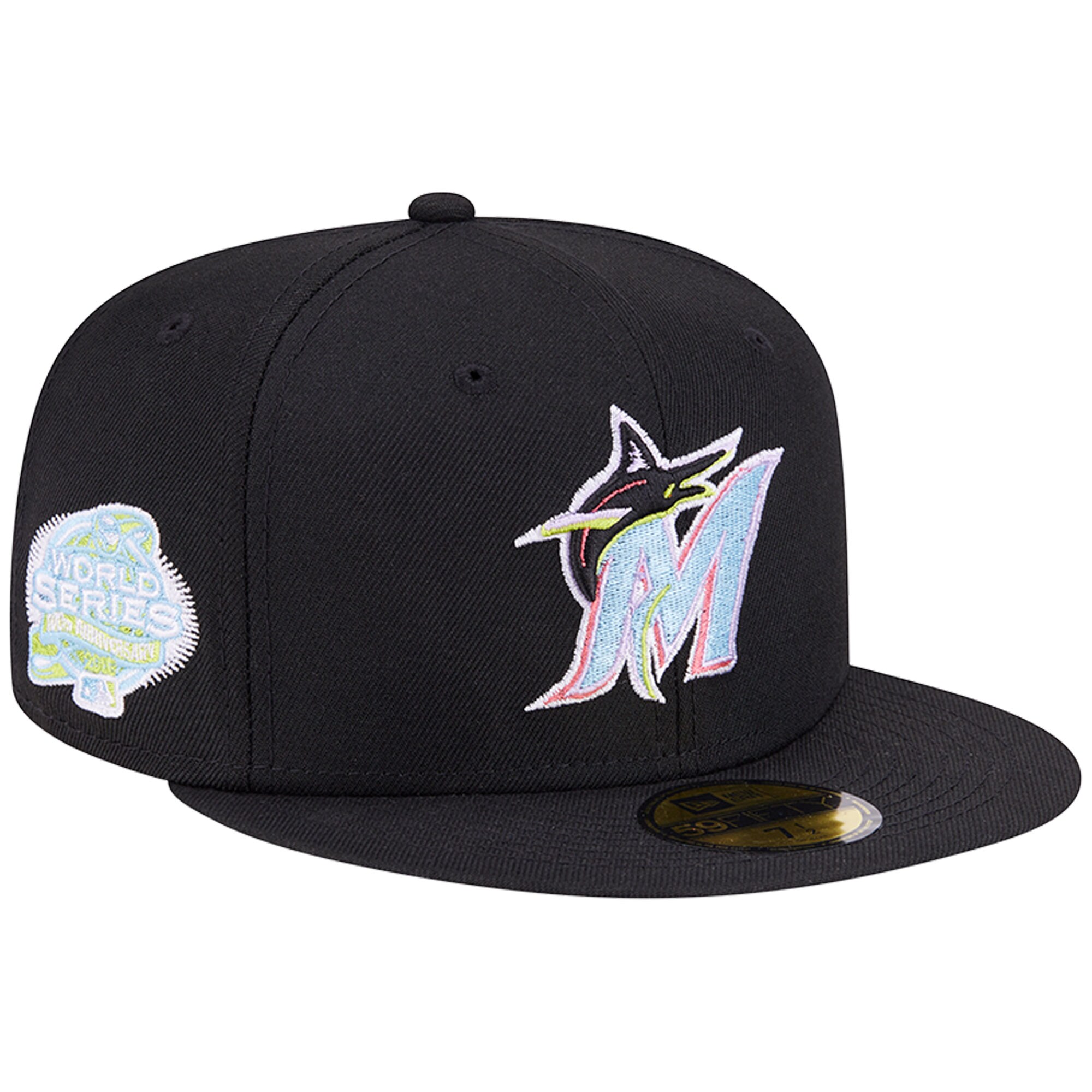 Top off any Miami Marlins look with this Multi-Color Pack 59FIFTY hat. Designed by New Era it features a colorful take on the club's logo along with a side patch celebrating the team's history. This fitted hat fits perfectly with any Miami Marlins fan outfit.