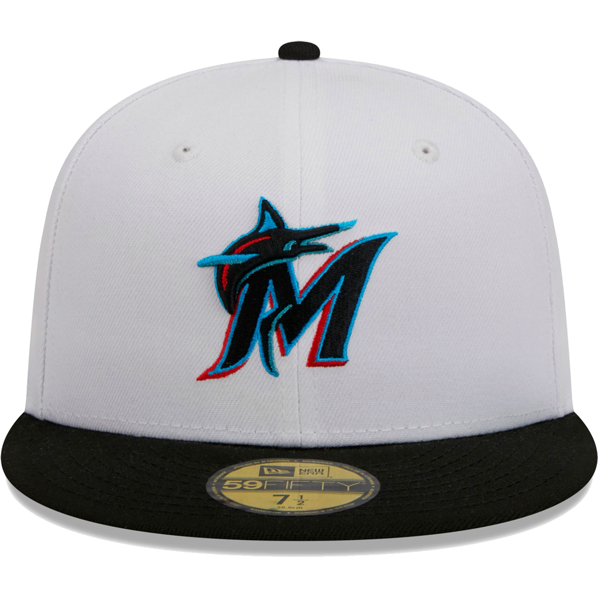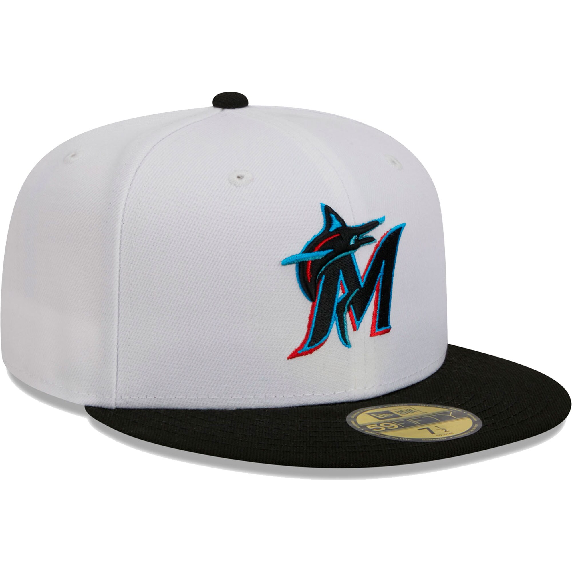 Show how devoted you are to the Miami Marlins with this New Era Optic 59FIFTY fitted hat. A vibrant bill and bold Miami Marlins embroidery make for the perfect spirited accessory. A trendy high crown and structured construction offer a classic look.