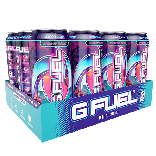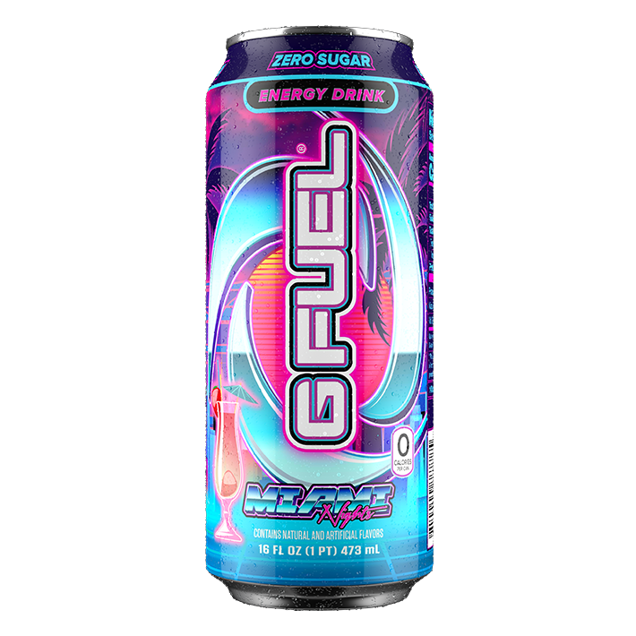 Your white Ferrari Testarossa is rolling down Ocean Drive. It’s hot, but you always know how to stay cool. You pull down your Wayfarers and see the new neon colors of a G FUEL Miami Nights 16 oz Can in your passenger seat. That refreshing, juicy mix of strawberry, coconut, and pineapple for people who know how to live fast, be it on the streets, in the water, or gaming at home. Make your days cool and your nights awesome with Miami Nights, featuring 140 mg of caffeine!