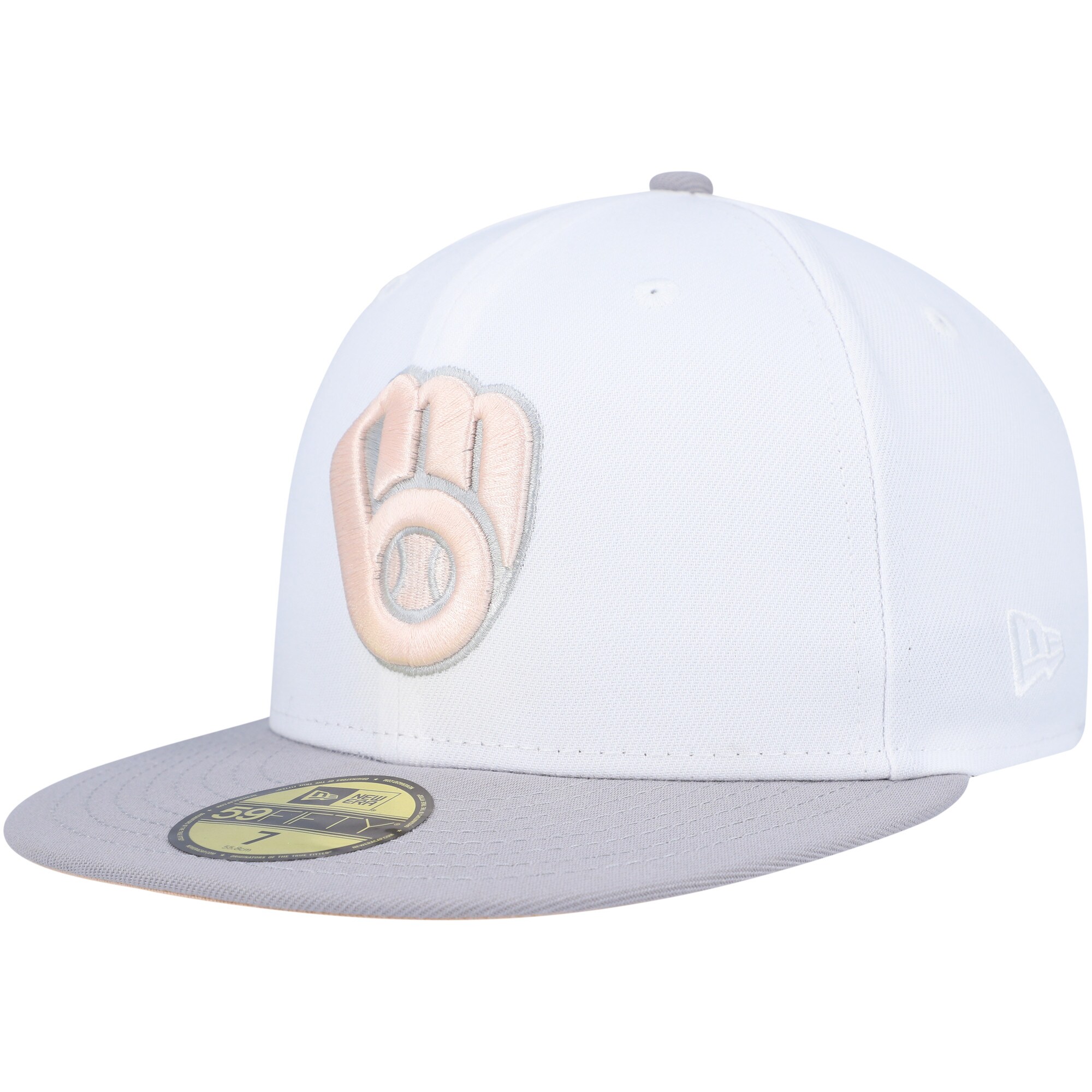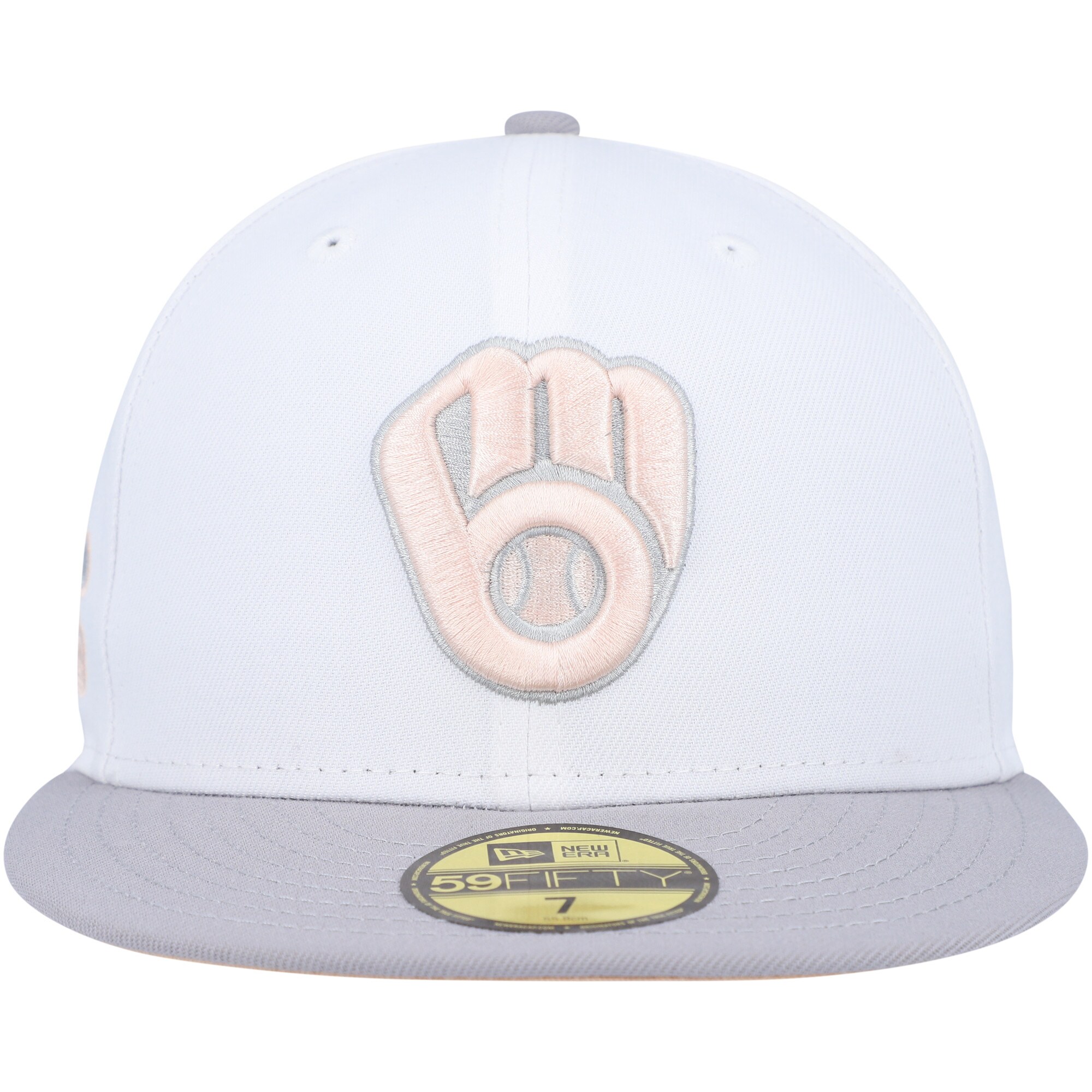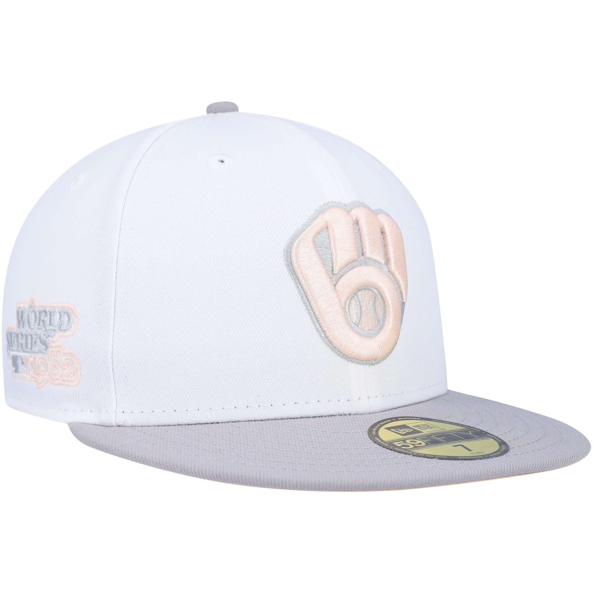 Milwaukee Brewers New Era 1982 World Series Side Patch Peach Undervisor 59FIFTY Fitted Hat - White/Gray