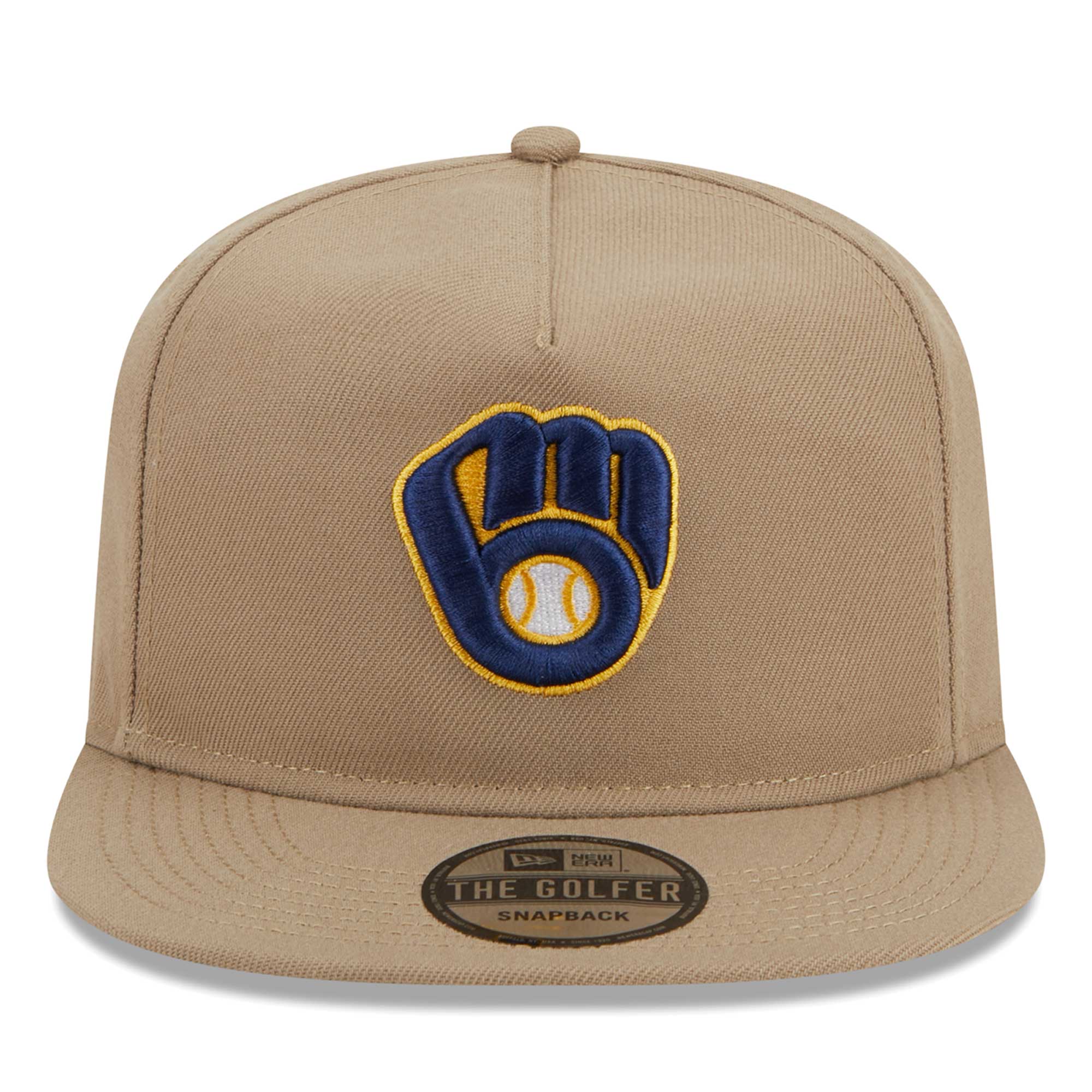 Versatile style steps up to the plate with this Milwaukee Brewers Golfer hat from New Era. Its neutral design puts focus on the Milwaukee Brewers logo in raised embroidery. A snap closure lets you quickly and easily adjust the fit for customizable comfort.