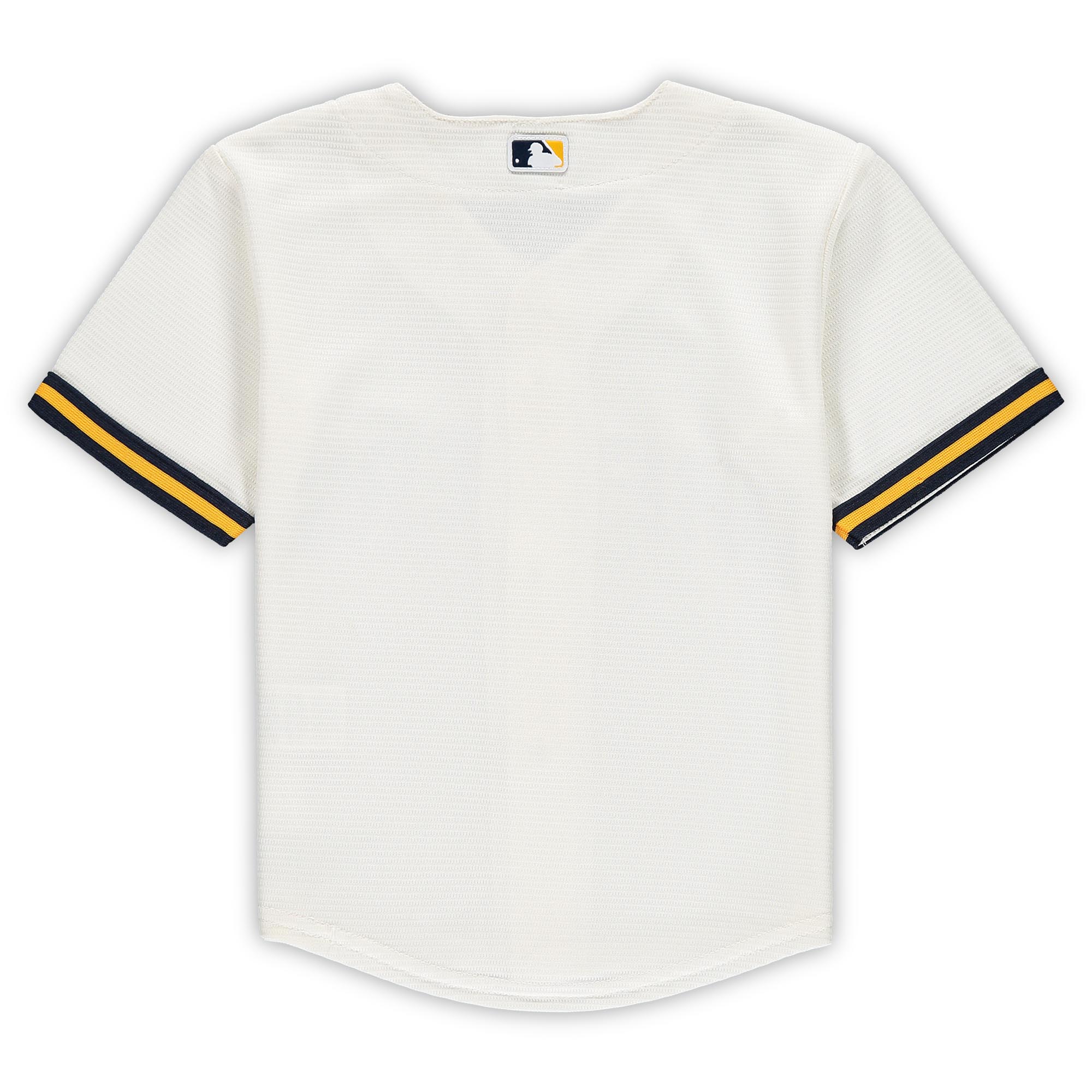 Your youngster will be well on their way toward becoming a loyal Milwaukee Brewers fan when they have this Replica Team Jersey from. Modeled after the players' on-field looks this jersey will be a perfect introduction to the Milwaukee Brewers and the world of baseball. It features a full-button front and fits comfortably against your kiddo's torso so that they can enjoy the game with the rest of the family.