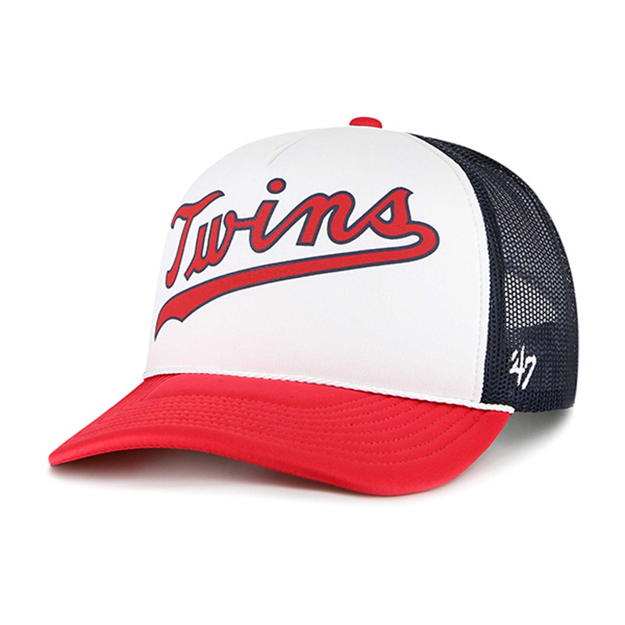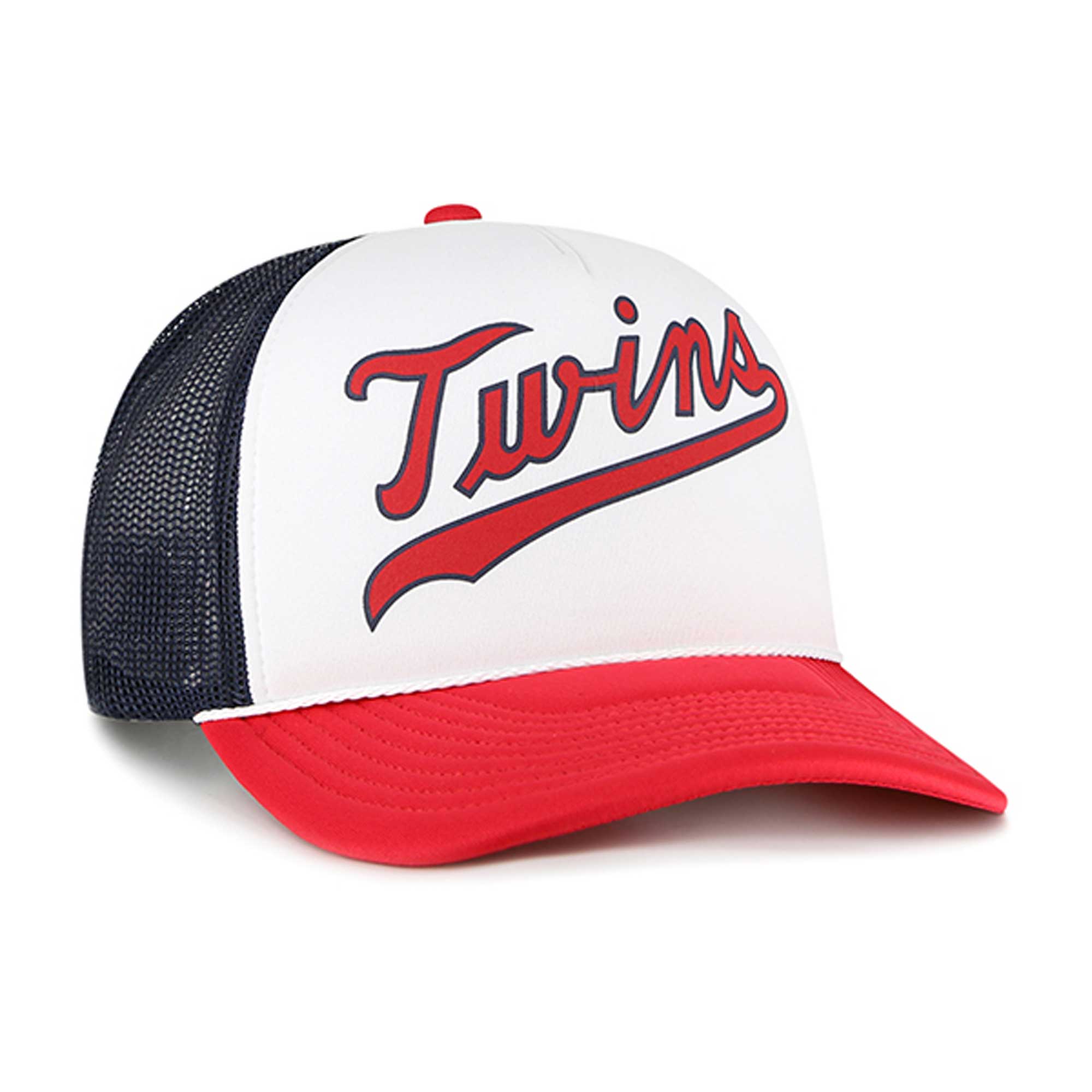 As a die-hard Minnesota Twins fan go grab this Foam Front Trucker snapback hat from '47. The bold Minnesota Twins logo embroidered across the crown will get you amped for game day. Thanks to the four mesh panels and structured fit you'll be able to enjoy a cool and comfortable feel while cheering the team on to victory.