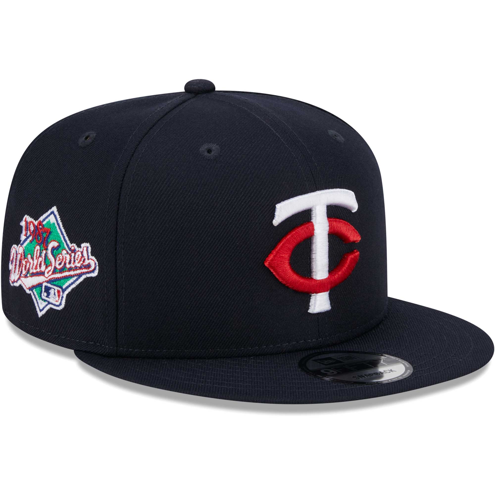 Cheer on the Minnesota Twins with this 1987 World Series Side Patch 9FIFTY snapback hat from New Era. It features the team's logo on the front and a side patch celebrating the 1987 World Series. Add a historic touch to any Minnesota Twins look with this timeless snapback.