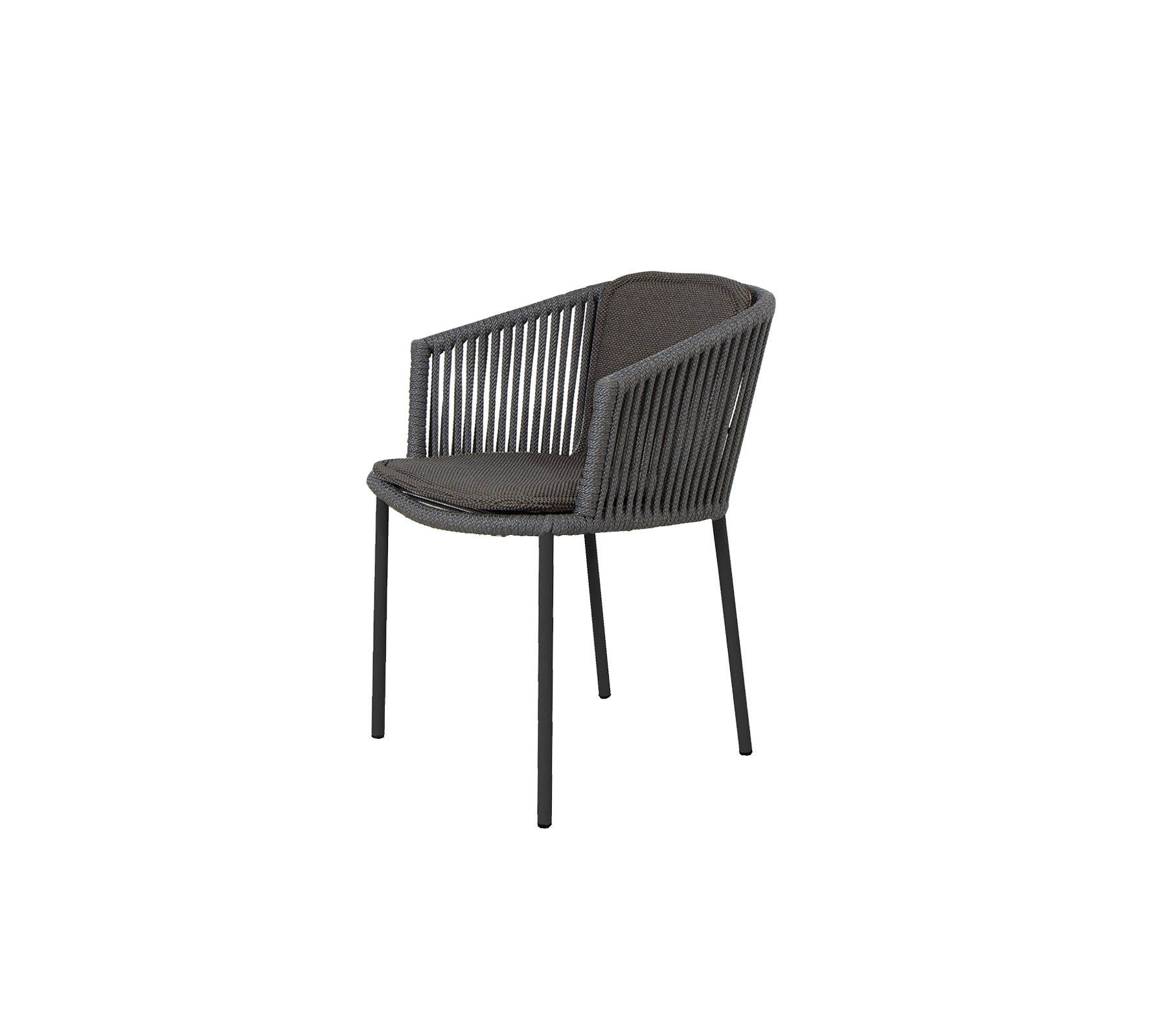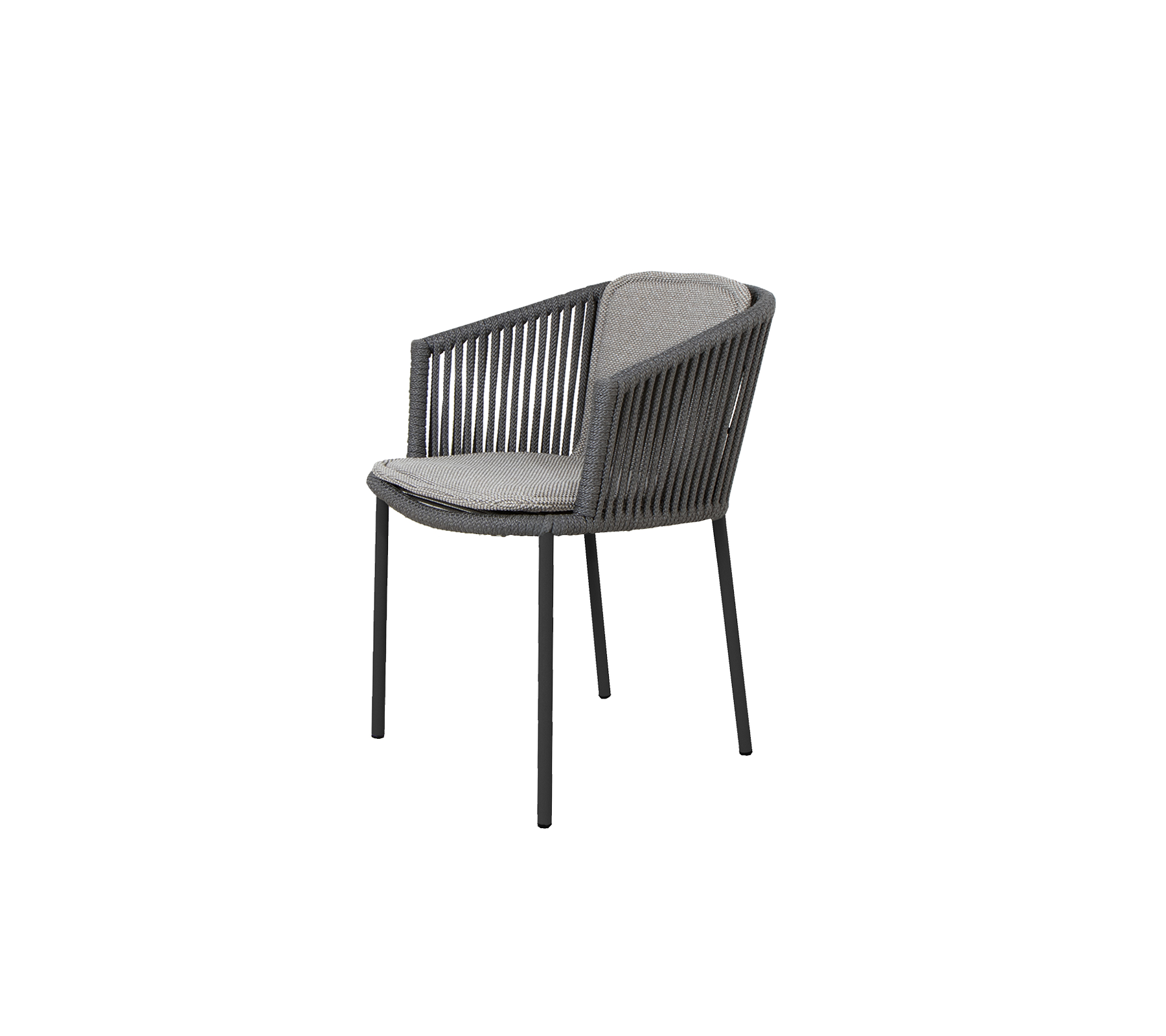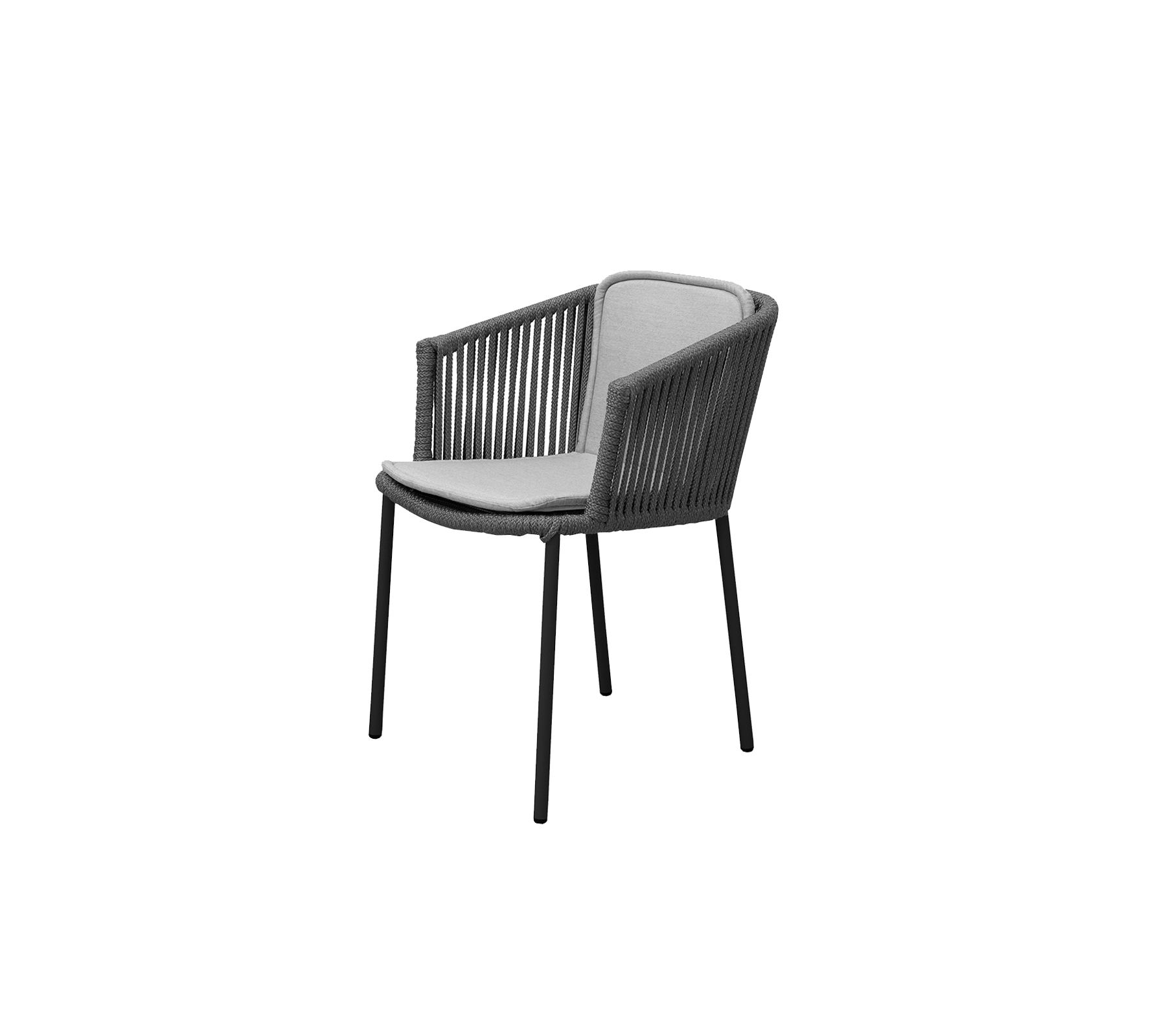 The elegant Moments armchair is designed by the Danish design duo Foersom & Hiort-Lorenzen MDD. Moments consists of a strong steel frame and a seat handwoven in soft and weatherproof Cane-line Soft Rope. The seat has an impressive and transparent design expression, which is beautiful to look at from any angle. Moments armchair oozes of Nordic clean lines and Scandinavian design at its best. A stylish armchair for the modern outdoor space. The cushions are produced in soft Cane-line fabrics. The Moments chair is stackable, and therefore does not take up a lot of space when stored.
