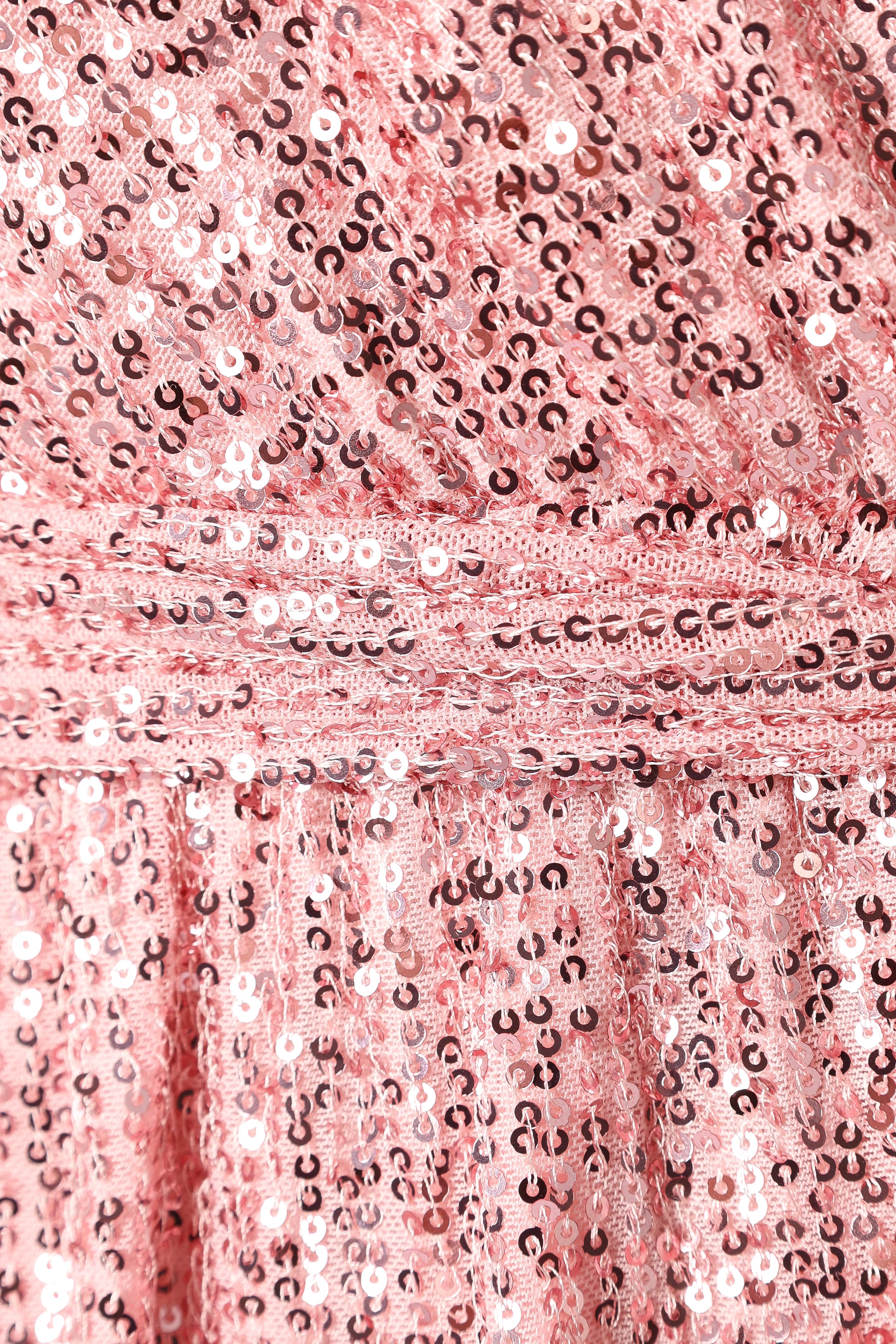 DETAILS This trendy piece features a playful overlay neckline that secures with a fun press stud close. The long sleeves sport elasticised cuffs, making for a chic silhouette, while the elasticised waistband ensures a flattering fit. Crafted from delicate sequin material, this romper promises a dazzling display wherever you go.