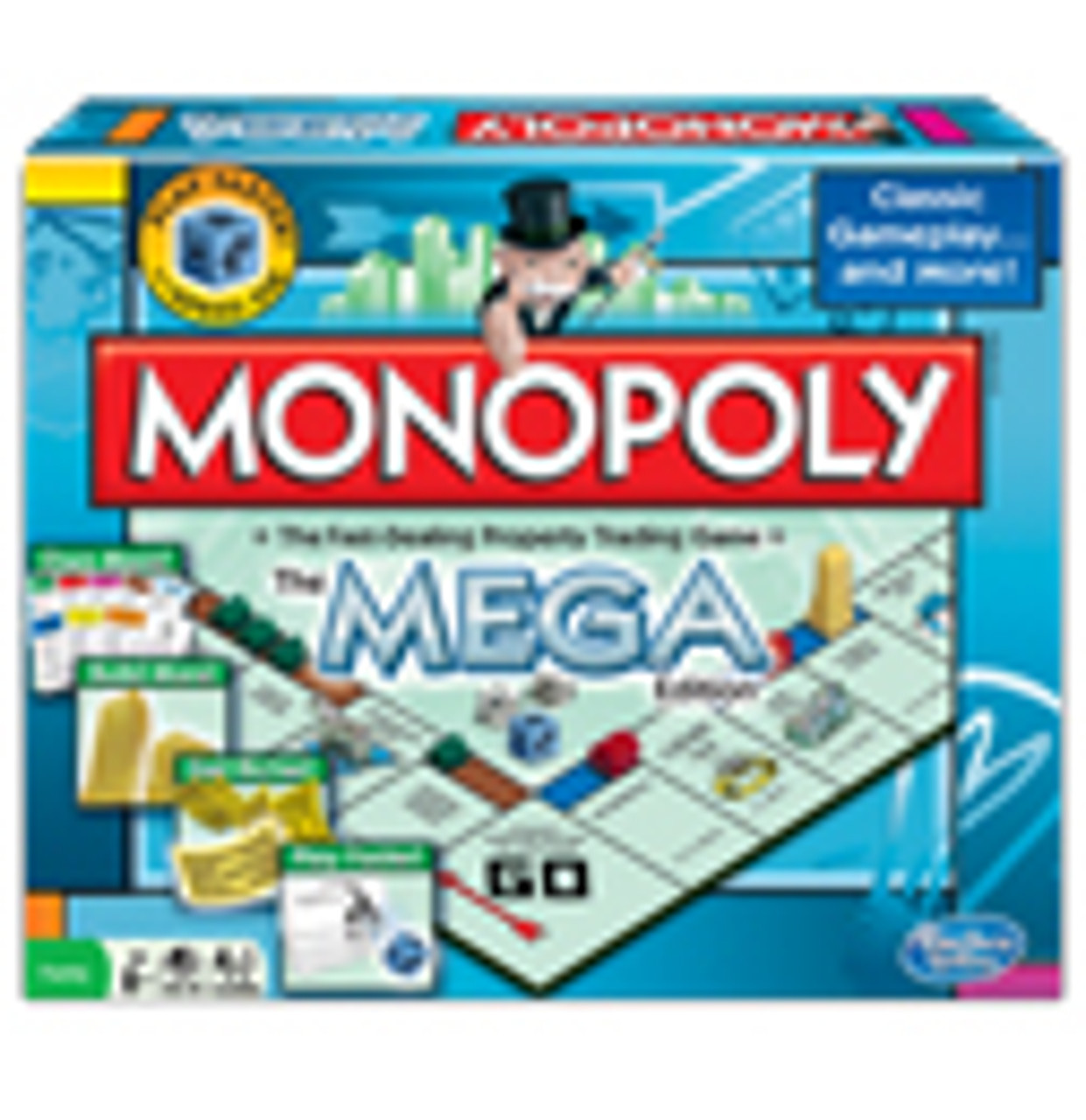 The same classic board we all know and love PLUS 9 new properties including 7 new states! In Monopoly®: The Mega Edition, you'll be able to build skyscrapers AND the game will play faster thanks to the Speed Die - invented by Winning Moves!