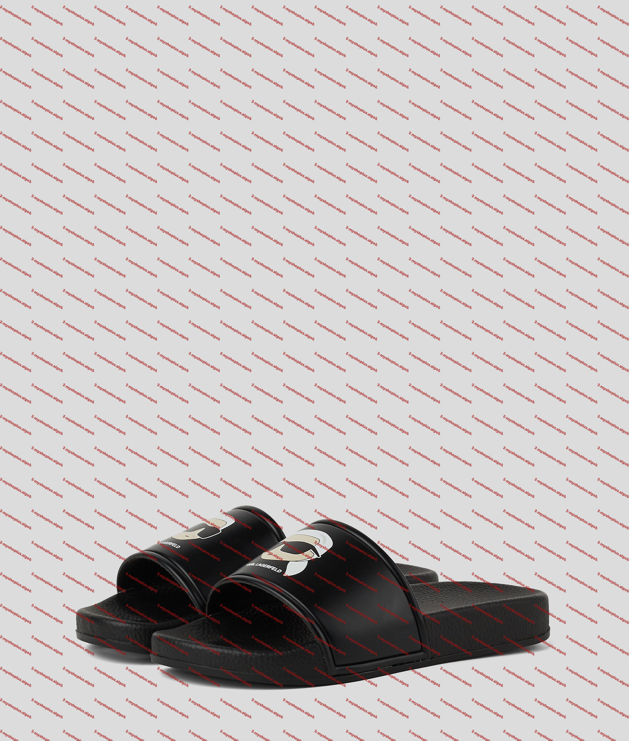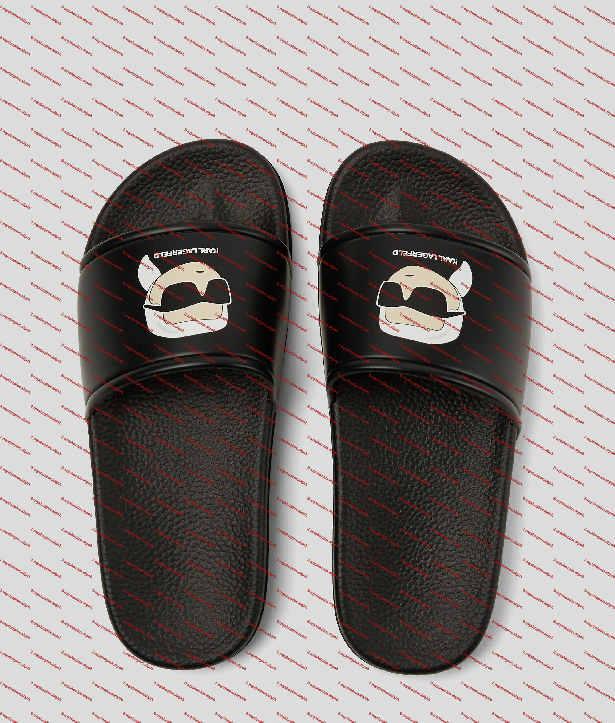 Simples et chics, ces mules pour tous les temps parées du logo Karl s'accordent avec toutes les tenues.