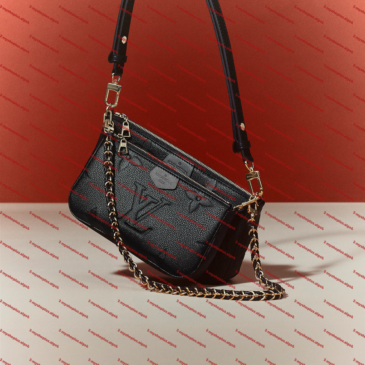 The Multi Pochette Accessoires cross-body bag in Monogram Empreinte leather allies form with function. Every part of this two-in-one bag is removable: the two pouches, the gold chain and the leather strap. The oversized Monogram embossed on the front contrasts perfectly with the classic Monogram pattern on the side gussets.