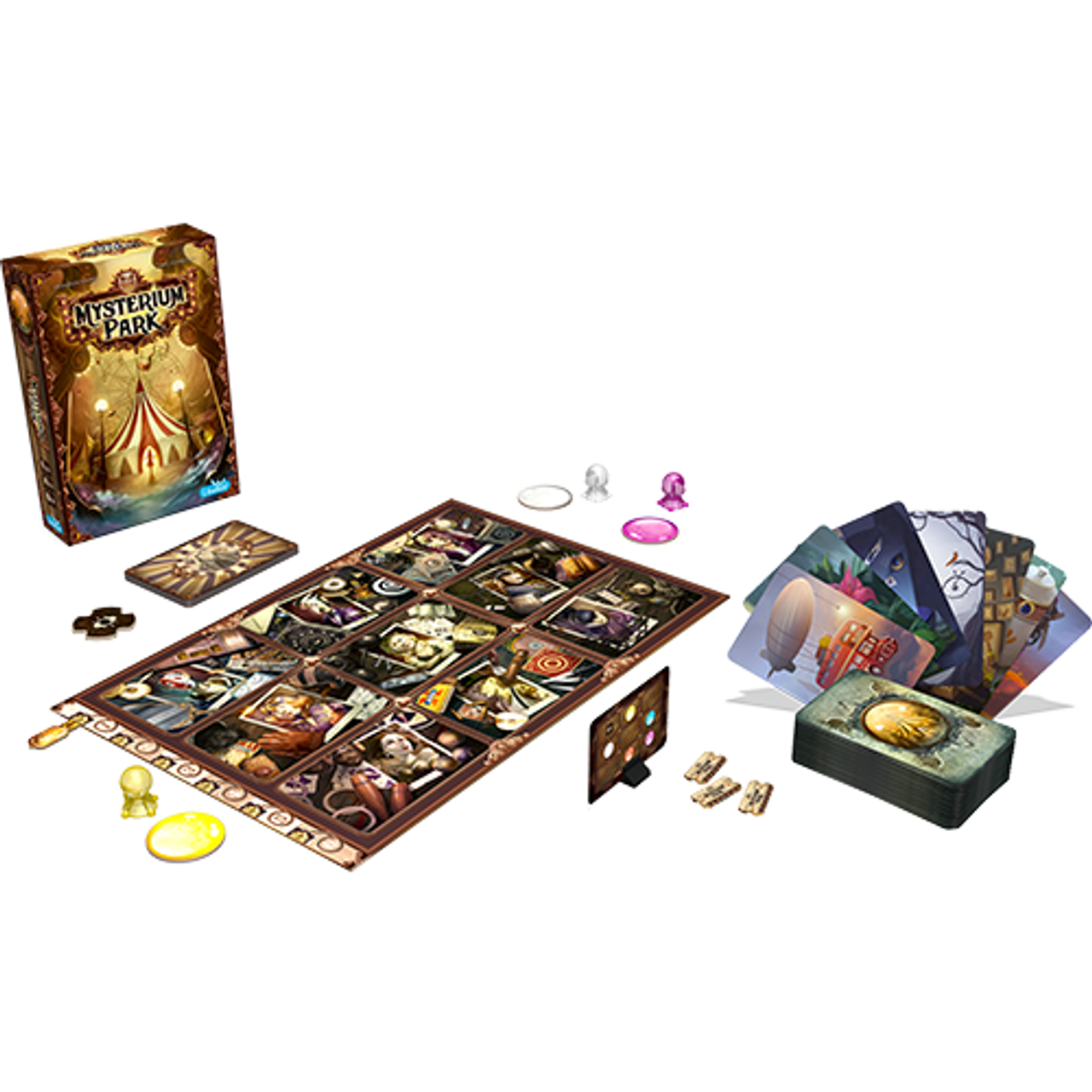 Welcome to Mysterium Park! Its cotton candies, its circus and its dark secrets... The former director disappeared, but the investigation came to nothing. Since that night, weird things have happened at the fair. As psychics, players are convinced that a ghost haunts this carnival. They’re now intent on giving it a chance to reveal the truth.