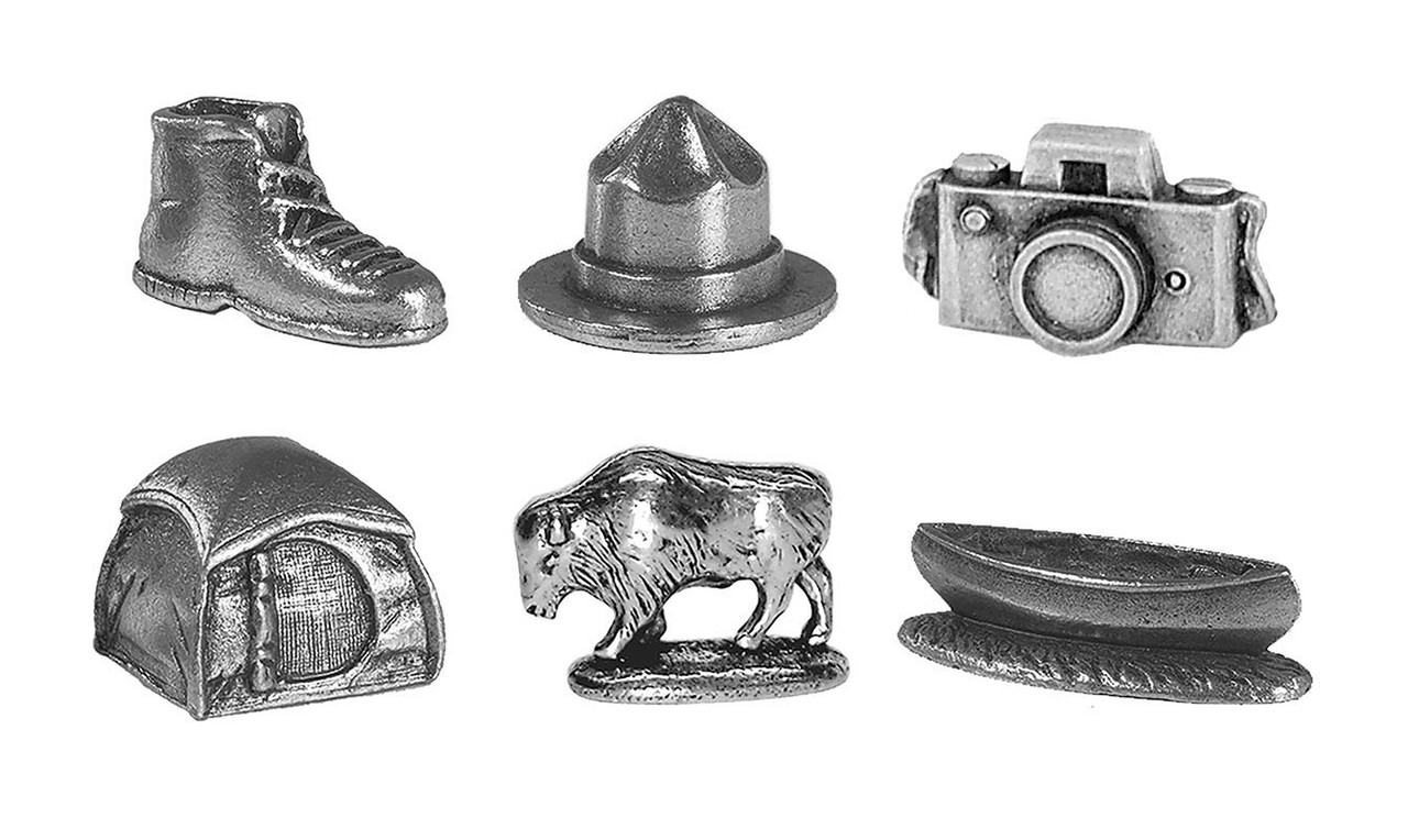 - 6 Collectible Tokens including Ranger Hat, Tent, Canoe, Bison, Hiking Boot, and Camera
