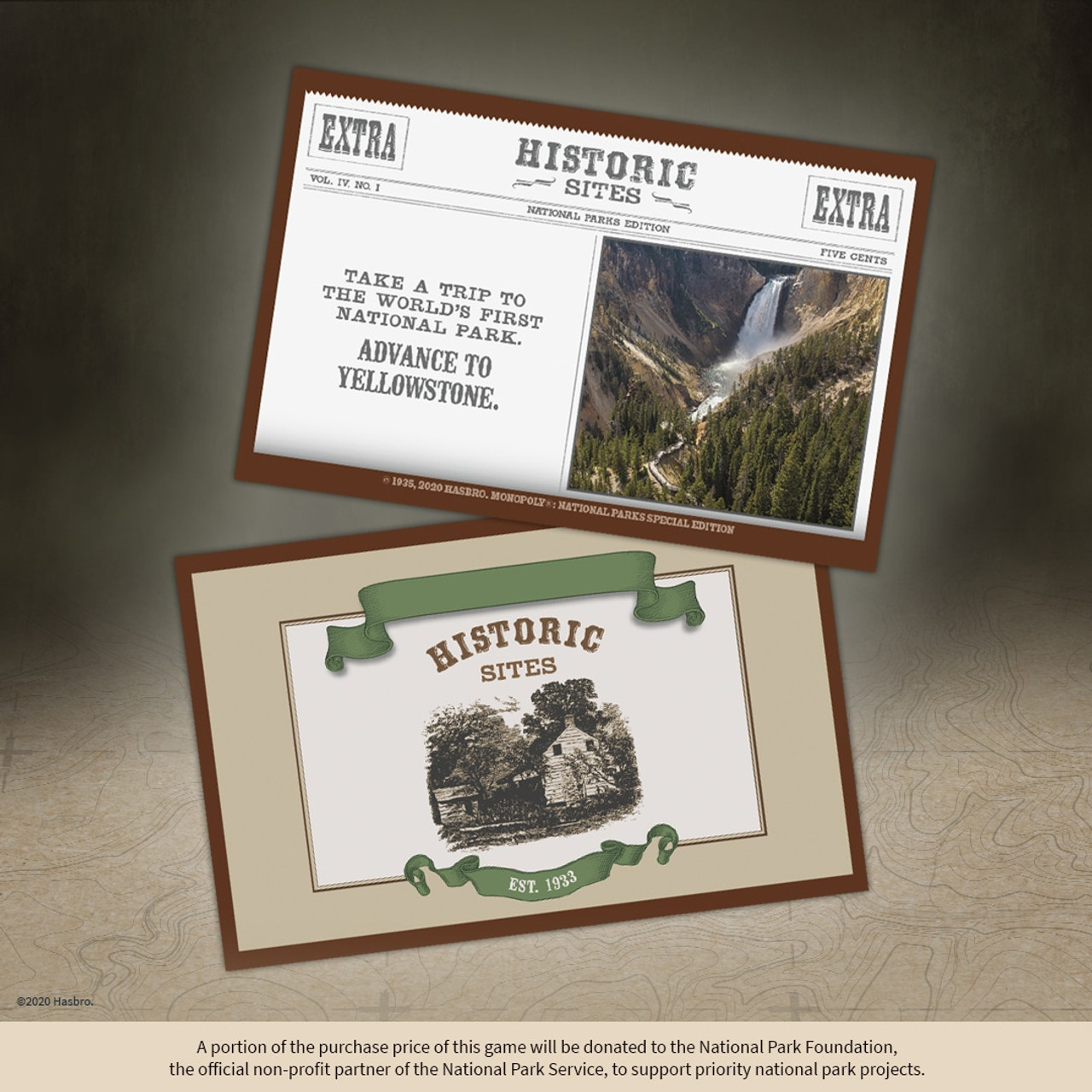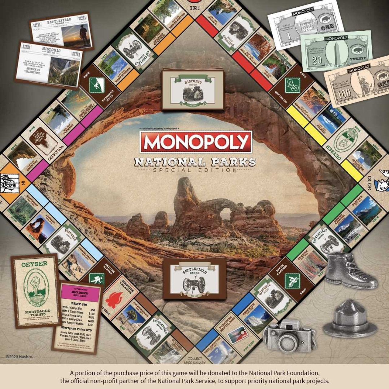 A MONOPOLY-themed adventure with the great outdoors awaits you! Plan a cross-country vacation and experience over 60 of the most beautiful and historic sites in America in this special National Parks Edition of MONOPOLY. Buy, sell and trade the diversity of these parks from the stunning landscape of the Grand Canyon to the awe inspiring wonder of Yellowstone. Also featured are the wildlife that call the parks home. A portion of proceeds goes to the National Park Foundation.