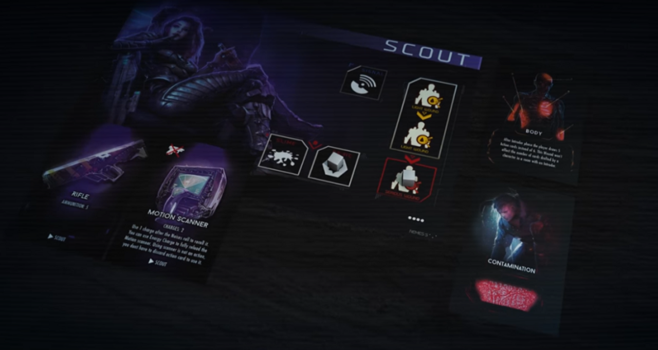 Playing Nemesis will take you into the heart of sci-fi survival horror in all its terror. A soldier fires blindly down a corridor, trying to stop the alien advance. A scientist races to find a solution in his makeshift lab. A traitor steals the last escape pod in the very last moment. Intruders you meet on the ship are not only reacting to the noise you make but also evolve as the time goes by. The longer the game takes, the stronger they become. During the game, you control one of the crew members with a unique set of skills, personal deck of cards, and individual starting equipment. These heroes cover all your basic SF horror needs. For example, the scientist is great with computers and research, but will have a hard time in combat. The soldier, on the other hand...
