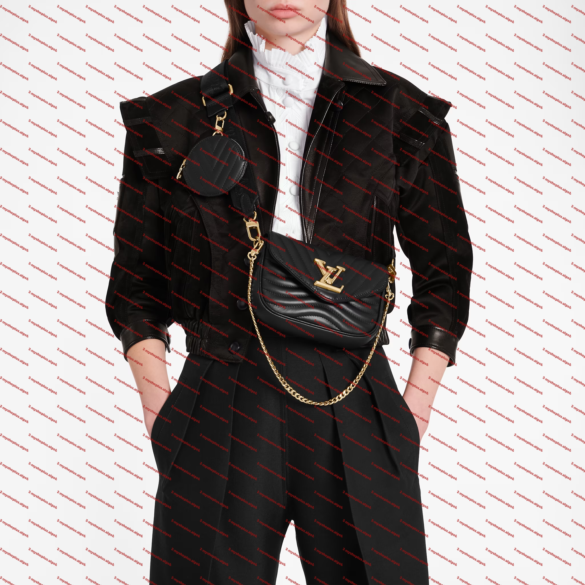 introduces the versatile New Wave Multi-Pochette crossbody handbag in quilted cowhide leather. With its wide strap, featuring an embroidered signature, gold-color chain for hand or short shoulder carry, and round coin purse clipped on the strap’s snap hook, all removable, it is the very definition of a versatile fashion accessory.