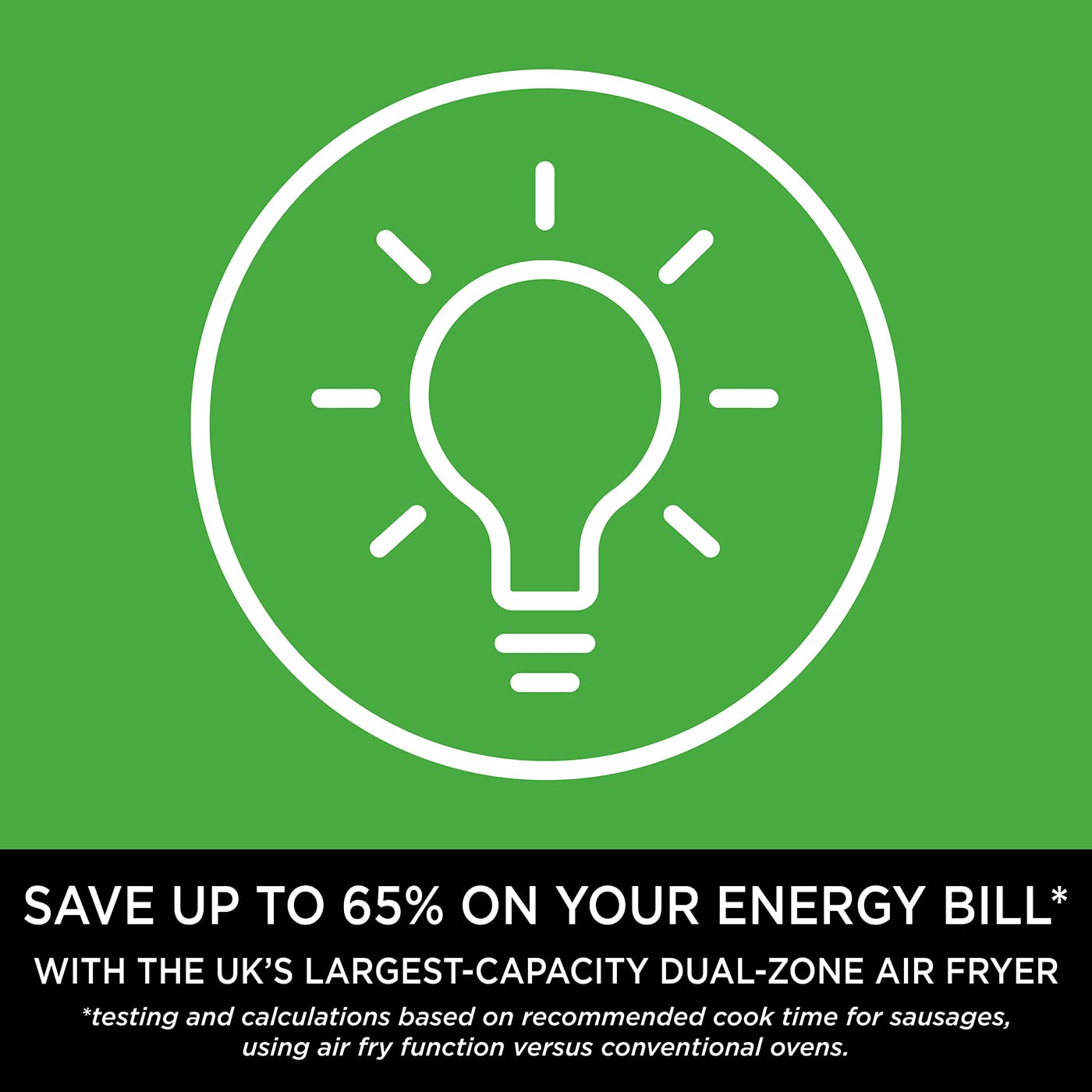- Save up to 65% on your energy bill* (*testing and calculations based on recommended cook time for sausages, using air fry function versus conventional ovens)