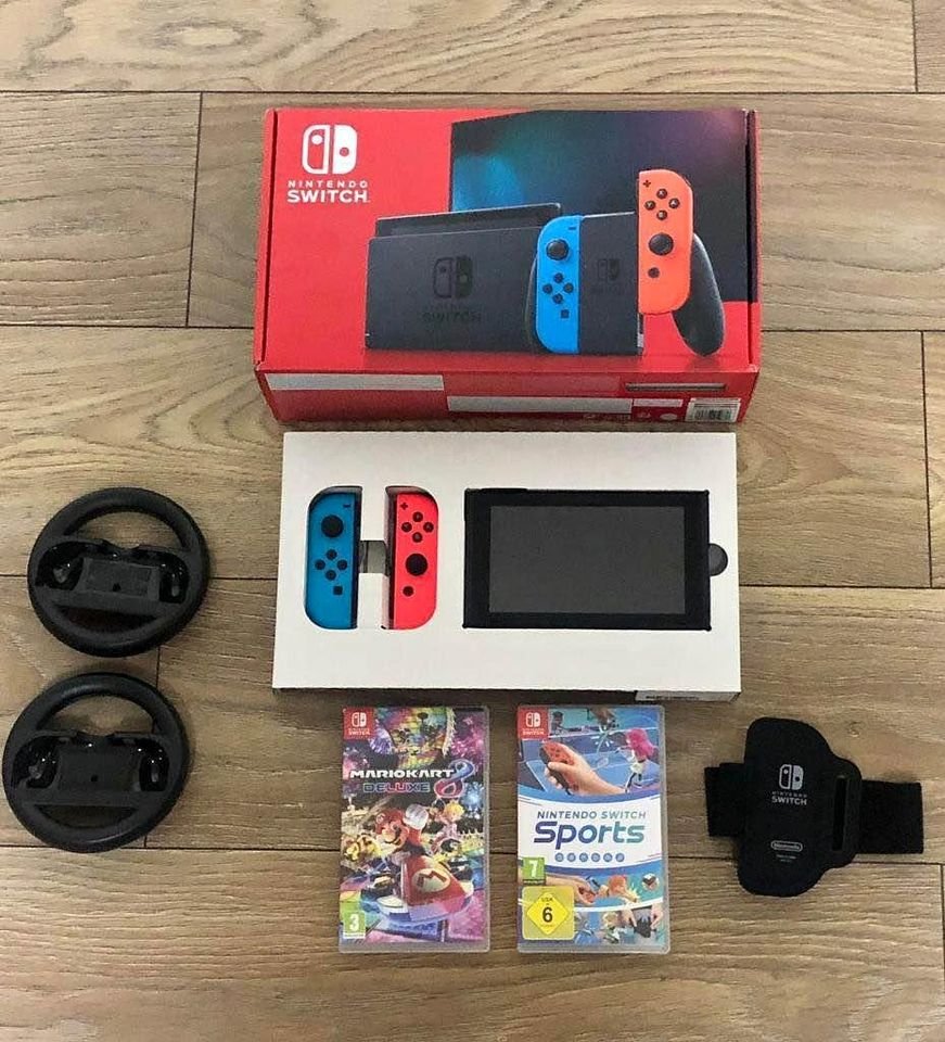 Get the gaming system that lets you play the games you want, wherever you are, however you like. Includes the Nintendo Switch console and Nintendo Switch dock in black, with contrasting left and right Joy‑Con controllers-one red, one blue. Also includes all the extras you need to get started. Model number: HAC-001(-01) (product serial number begins with “XKW”) This model includes battery life of approximately 4.5 - 9 hours. The battery life will depend on the games you play. For instance, the battery will last approximately 5.5 hours for The Legend of Zelda: Breath of the Wild (games sold separately).