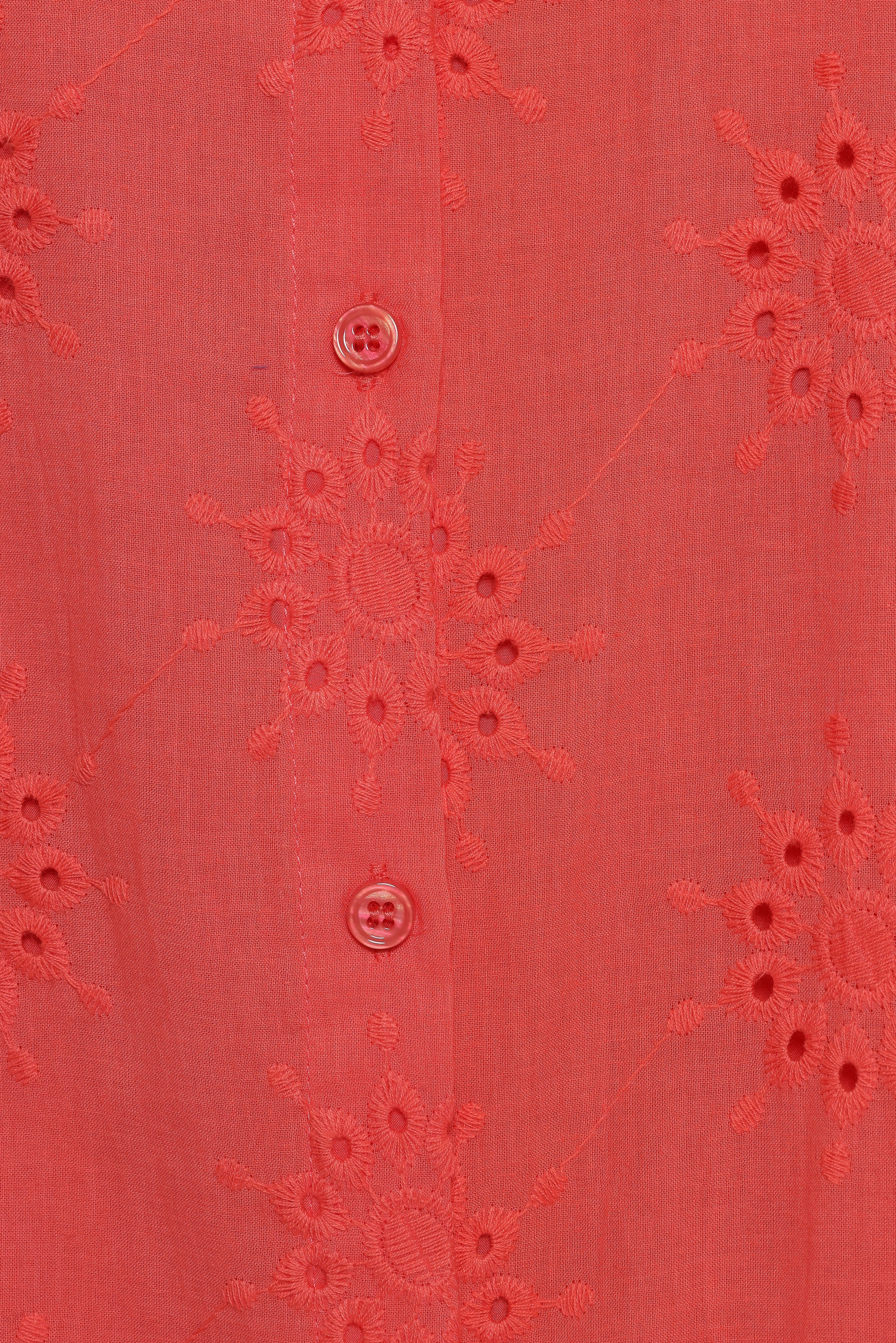 DETAILS With short sleeves and a functional button-down front, this dress is as practical as it is stylish. What sets this dress apart is its exquisite embroidered floral feature.