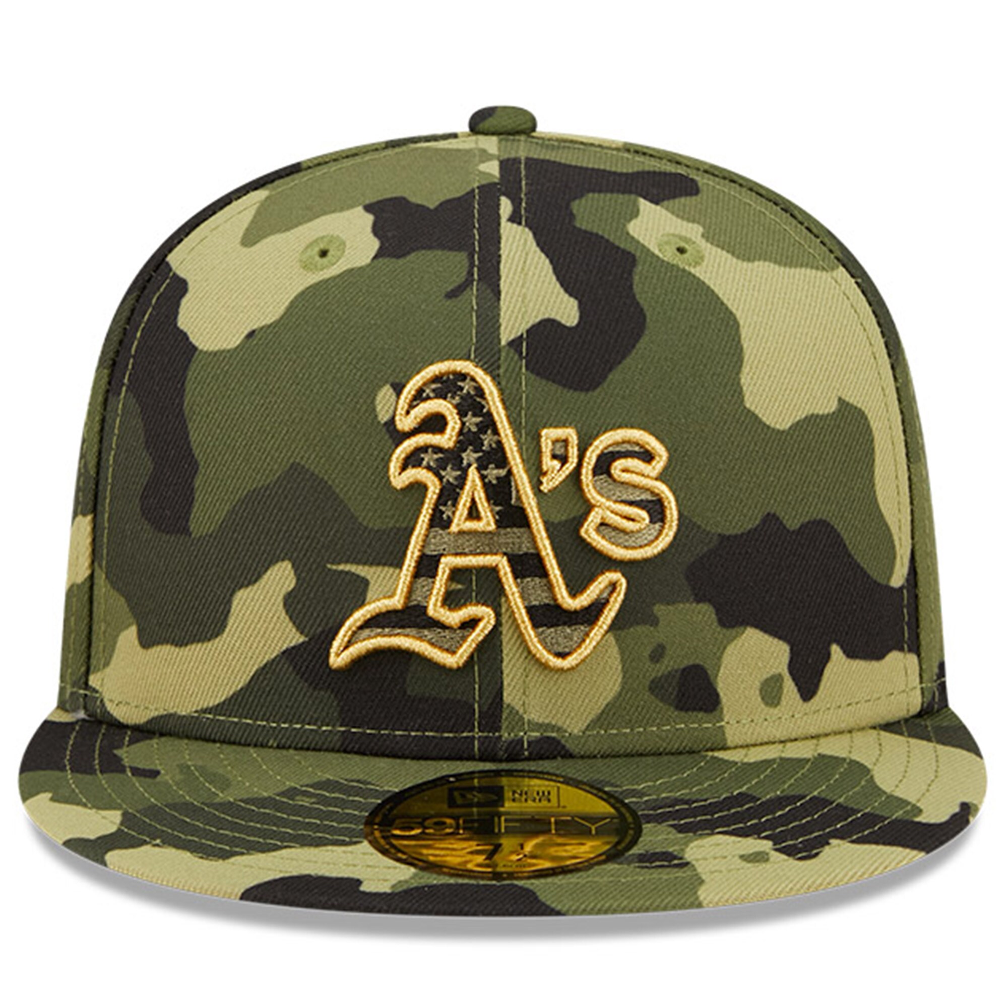 No one's a bigger Oakland Athletics fan than you and that'll be clear when you rock this special 2022 Armed Forces Day On-Field 59FIFTY Fitted Hat from New Era. The spirited camo design and six-star patch on the right side make this a unique addition to your collection and will help you stand out from fellow baseball fans. This special Armed Forces cap will let everyone know your allegiance lies with the Oakland Athletics. Major League Baseball is a proud supporter of charitable programs for service members veterans and military families.
